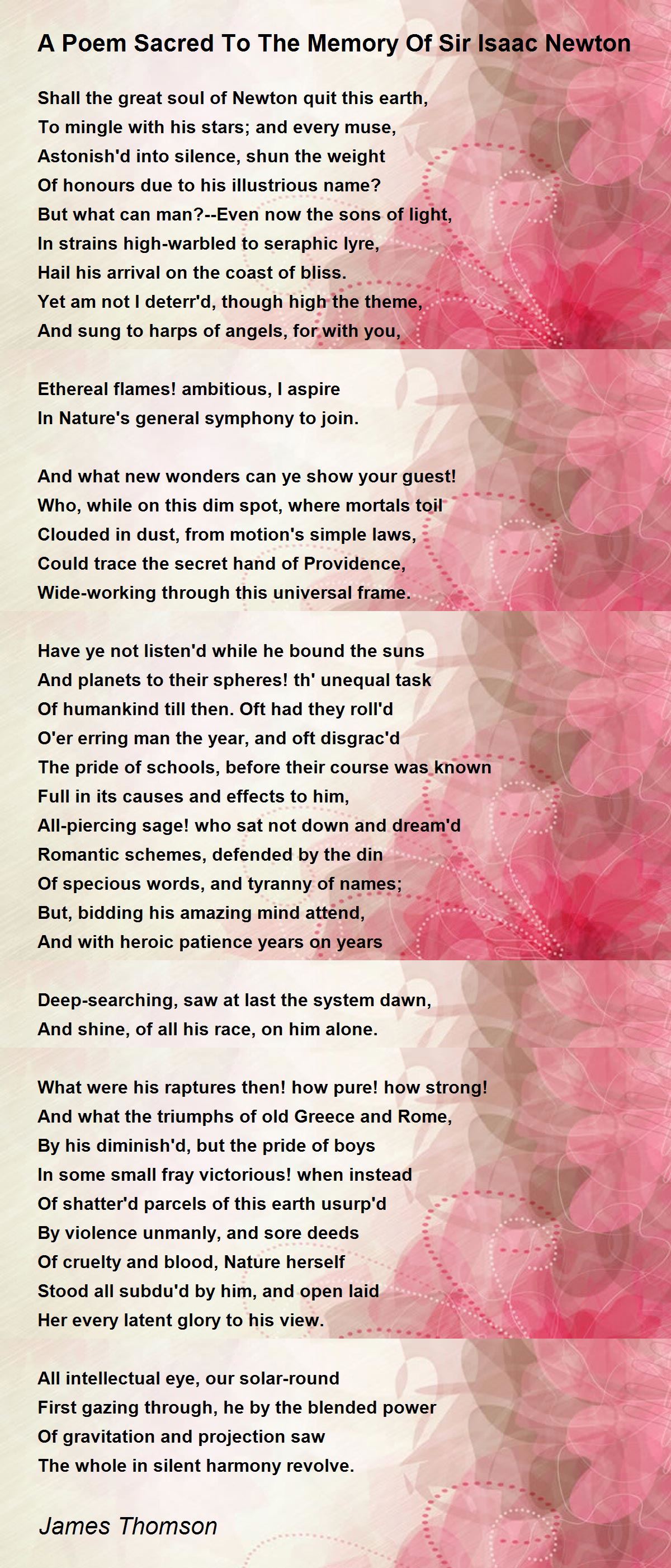 Comments about A Poem Sacred To The Memory Of Sir Isaac Newton by James Thomson