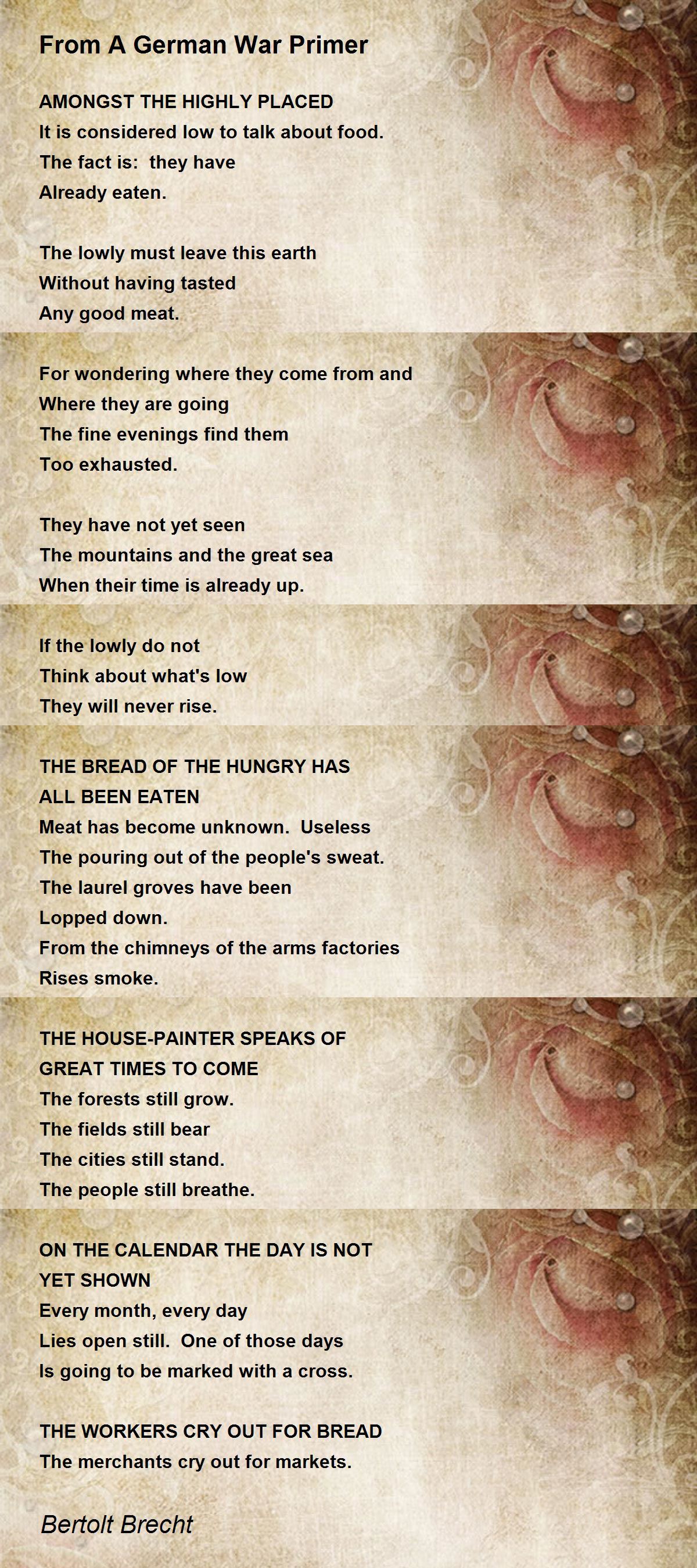 I tried to write a longer comment but PH seems to restrict comments now. All I will say is that Picasso had a philosophy behind his art; he was trying to capture time + movement + perception, not just form. I encourage you to think about how Brecht is trying to frame the reader's perception here; it would not be nearly the same plainly stated.
