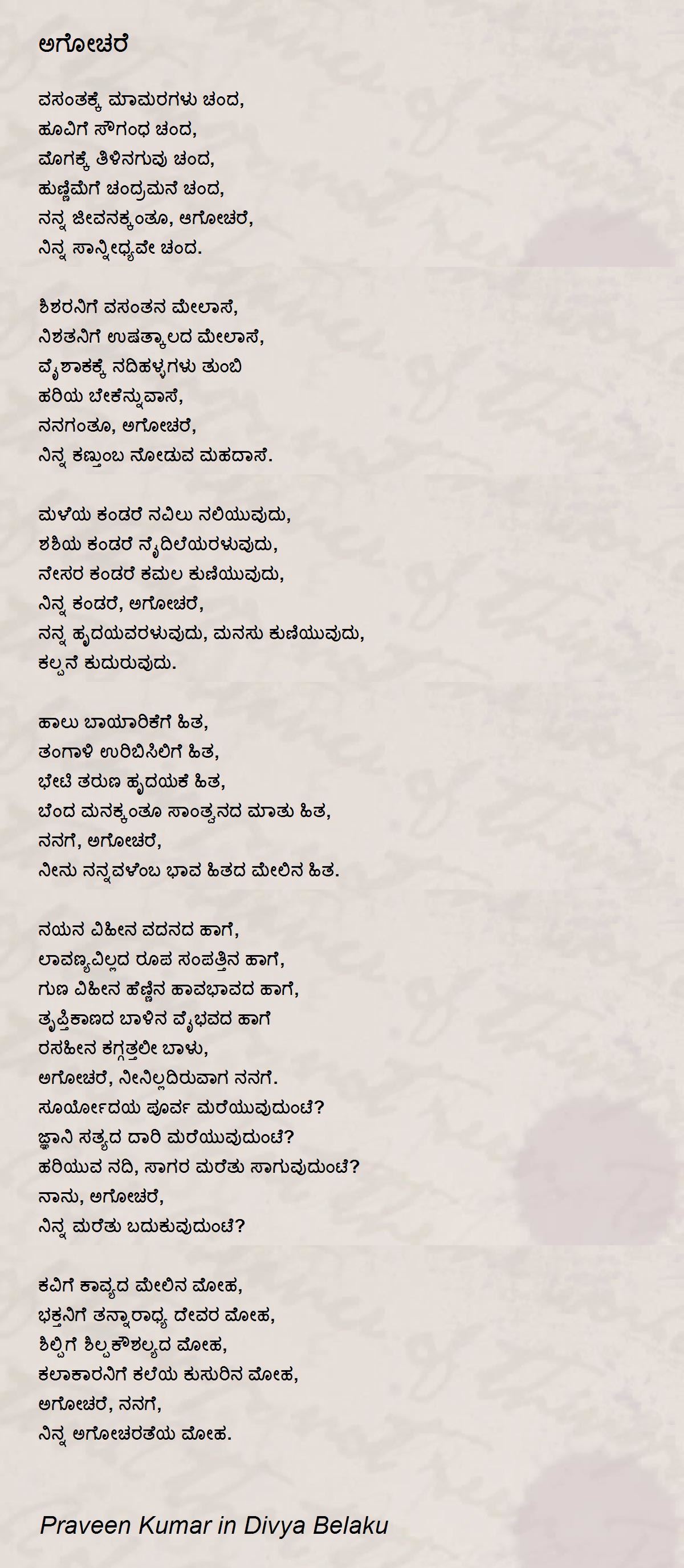 ಓ ನನ್ನ ಅಗೋಚರೆ.