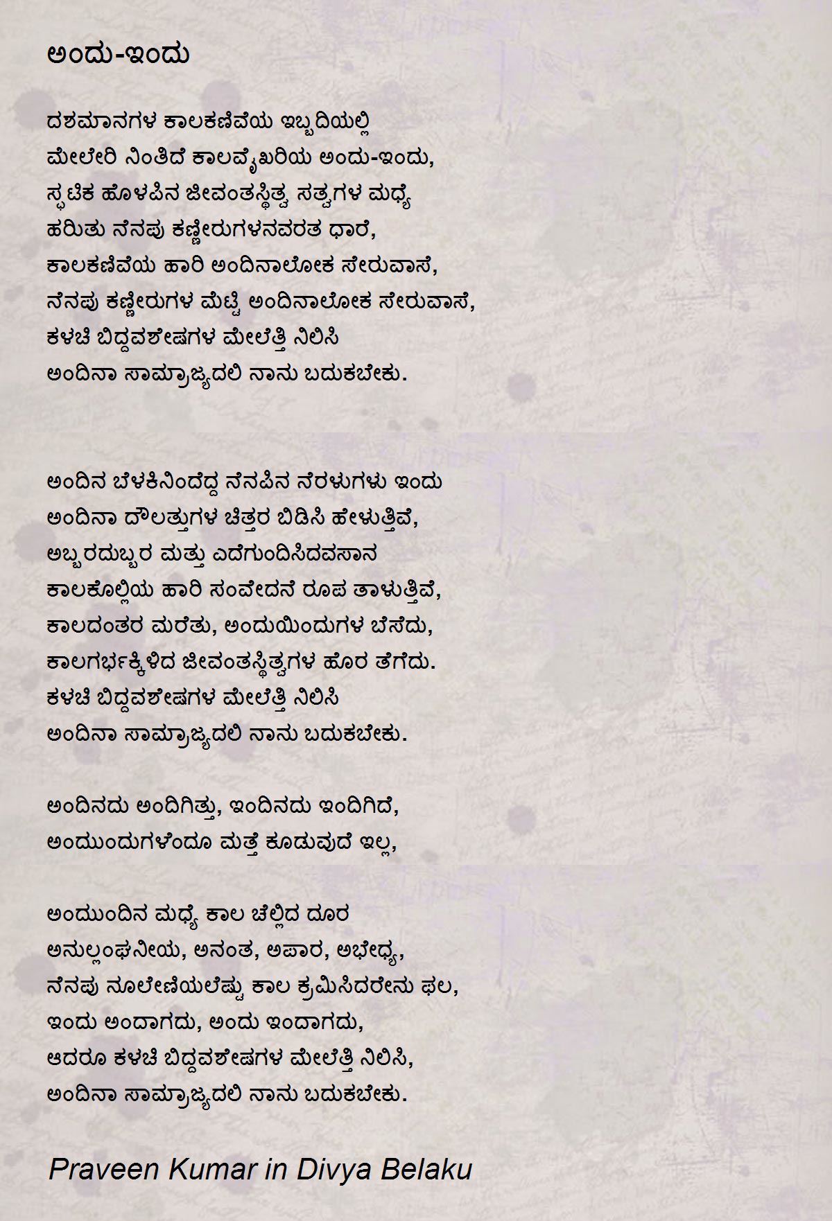ಕಾಲದಂತರ ಮರೆತು, ಅಂದುಯಿಂದುಗಳ ಬೆಸೆದು,