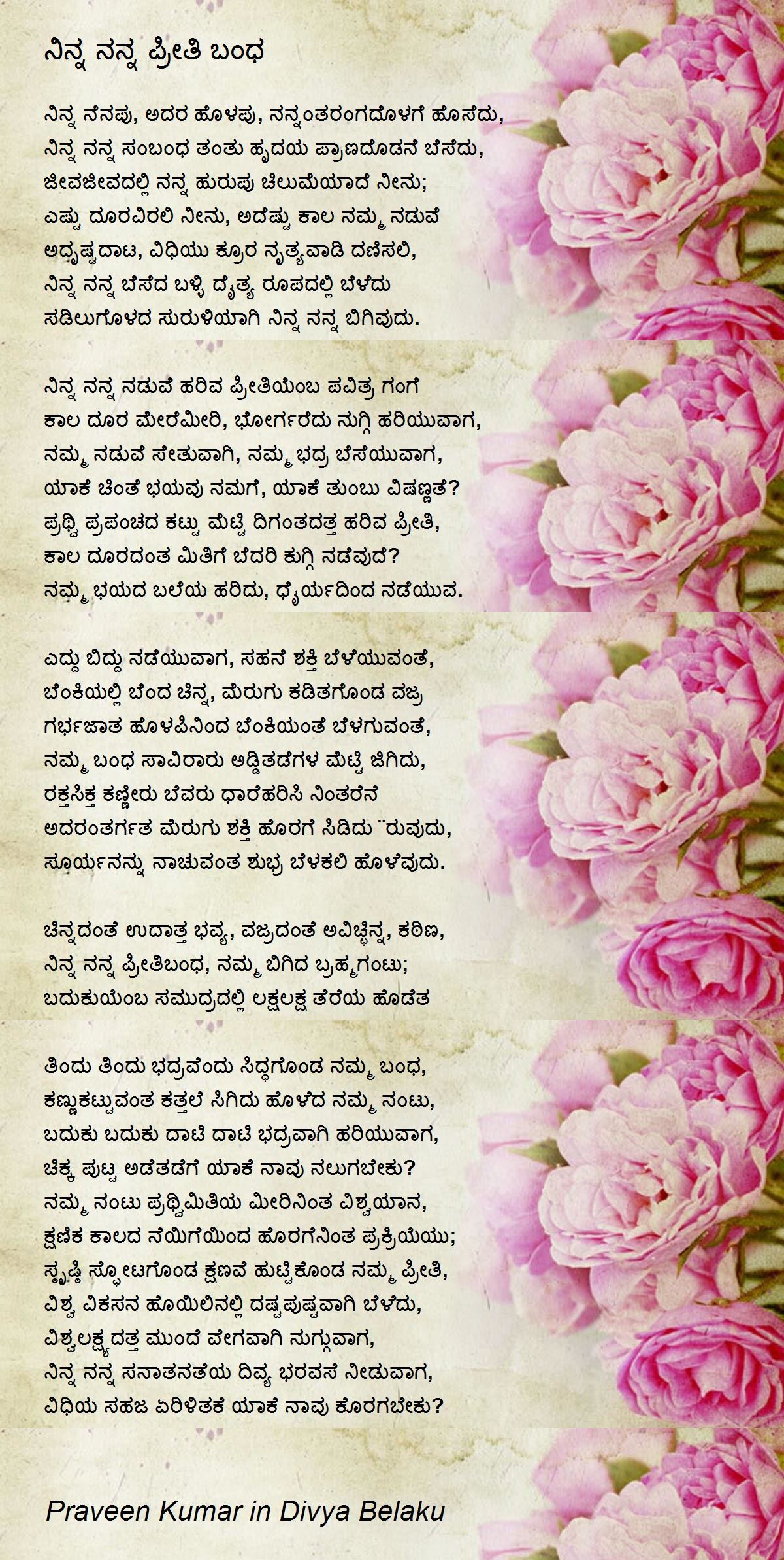 ನಿನ್ನ ನನ್ನ ನಡುವೆ ಹರಿವ ಪ್ರೀತಿಯೆಂಬ ಪವಿತ್ರ ಗಂಗೆ