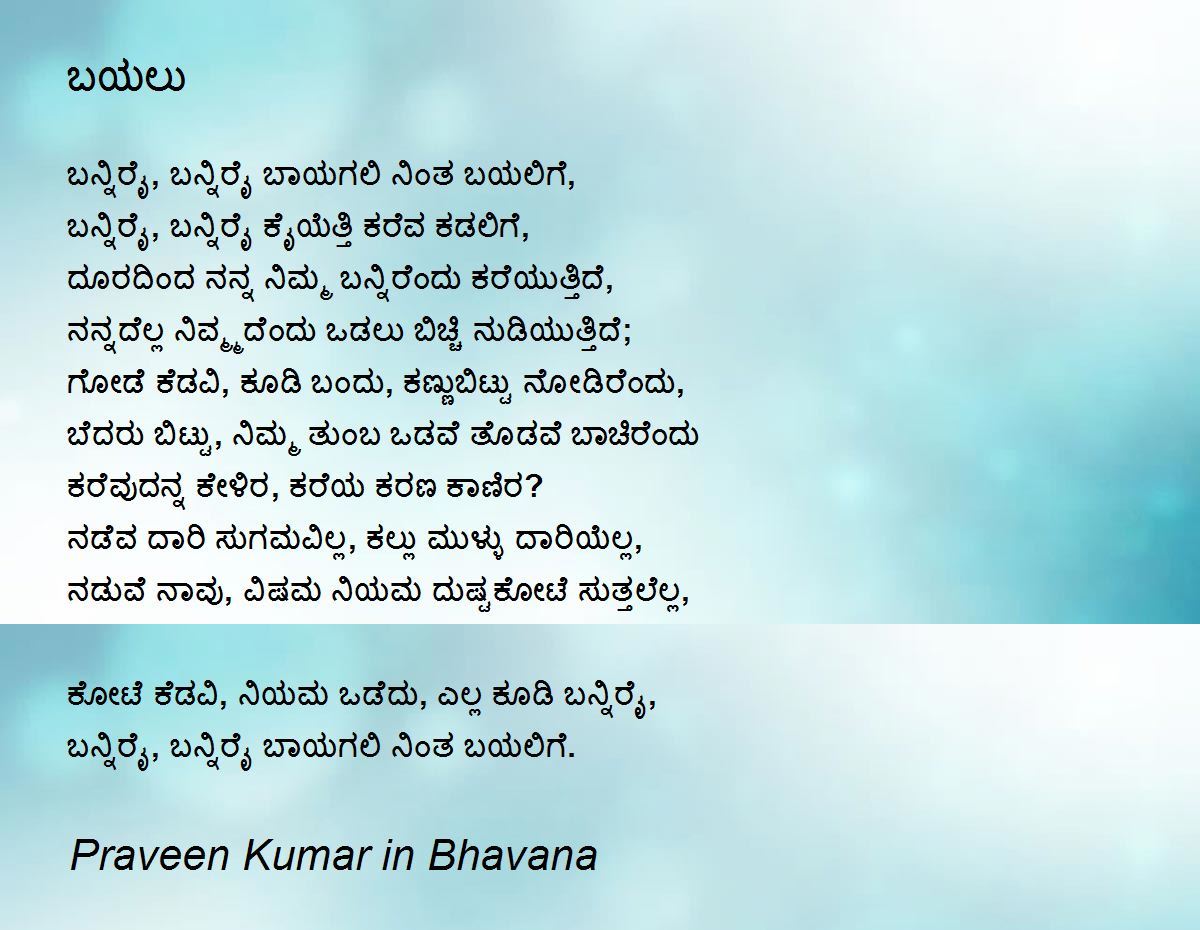 ನನ್ನದೆಲ್ಲ ನಿವ್ಮ್ಮದೆಂದು ಒಡಲು ಬಿಚ್ಚಿ ನುಡಿಯುತ್ತಿದೆ;