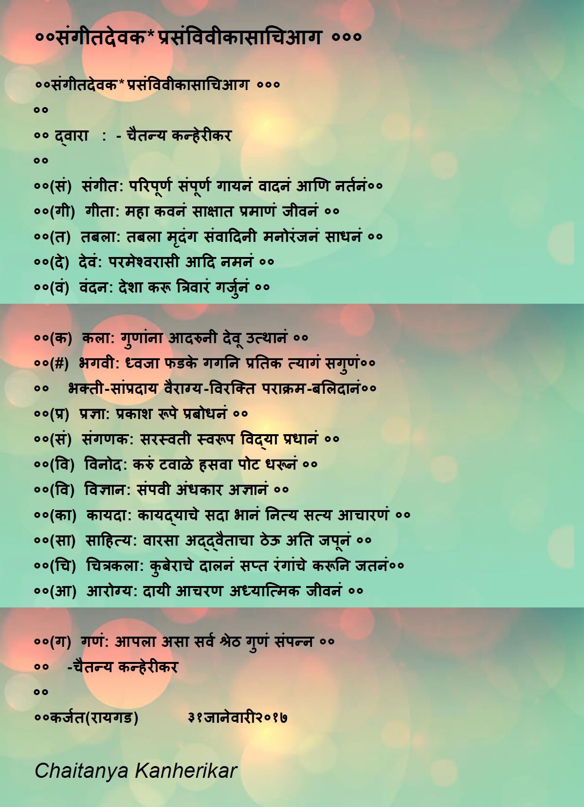 ०० द्वारा : - चैतन्य कन्हेरीकर