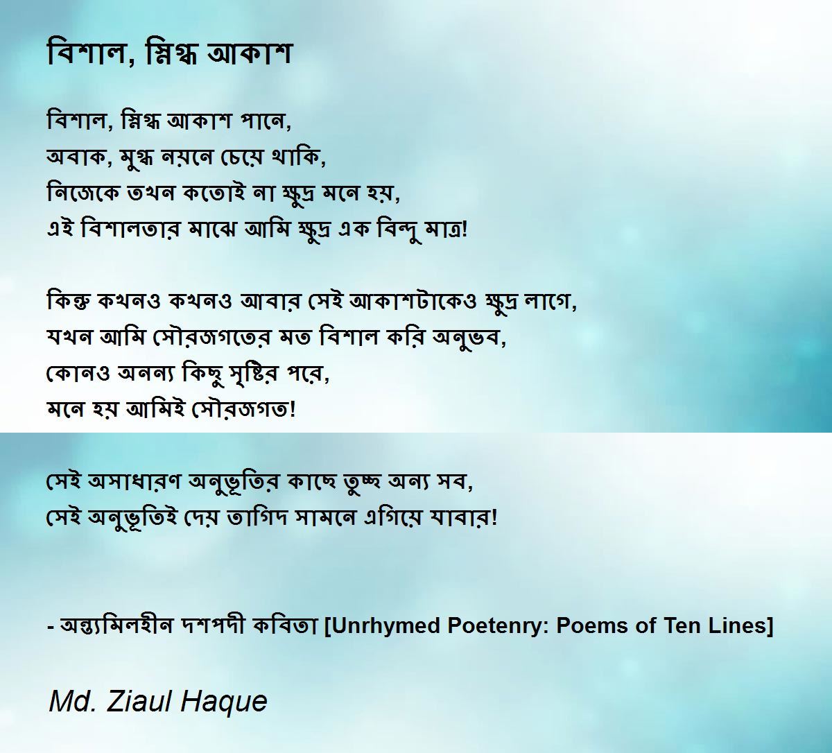 বিশাল, স্নিগ্ধ আকাশ পানে,