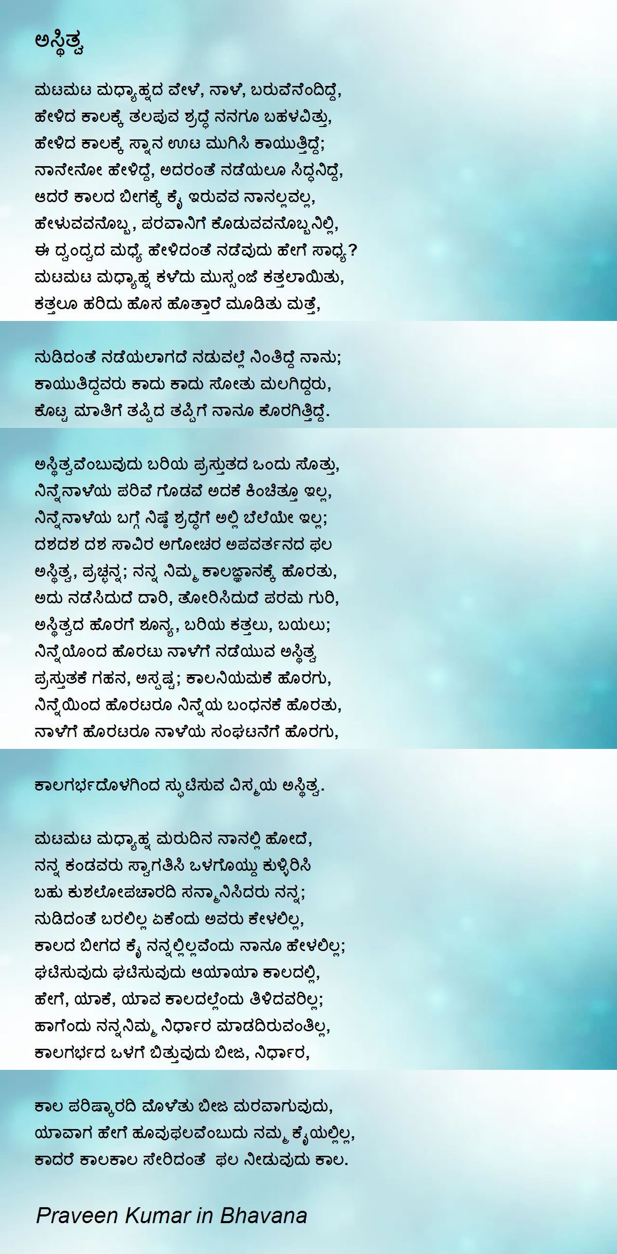 ನಿನ್ನೆಯೊಂದ ಹೊರಟು ನಾಳೆಗೆ ನಡೆಯುವ ಅಸ್ಥಿತ್ವ