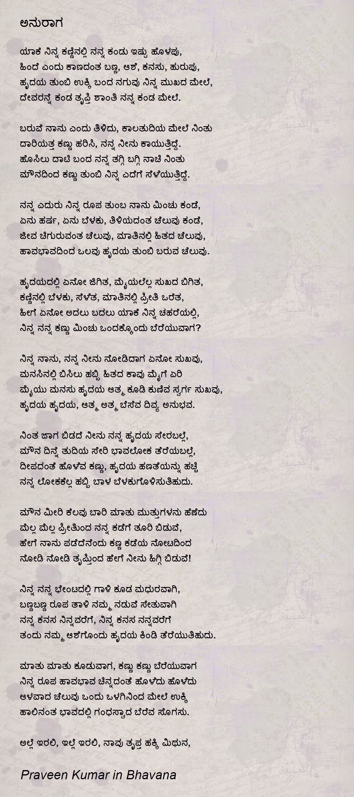 ನನ್ನ ಲೋಕಕೆಲ್ಲ ಹಬ್ಬಿ ಬಾಳ ಬೆಳಕುಗೊಳಿಸುತಿಹುದು.