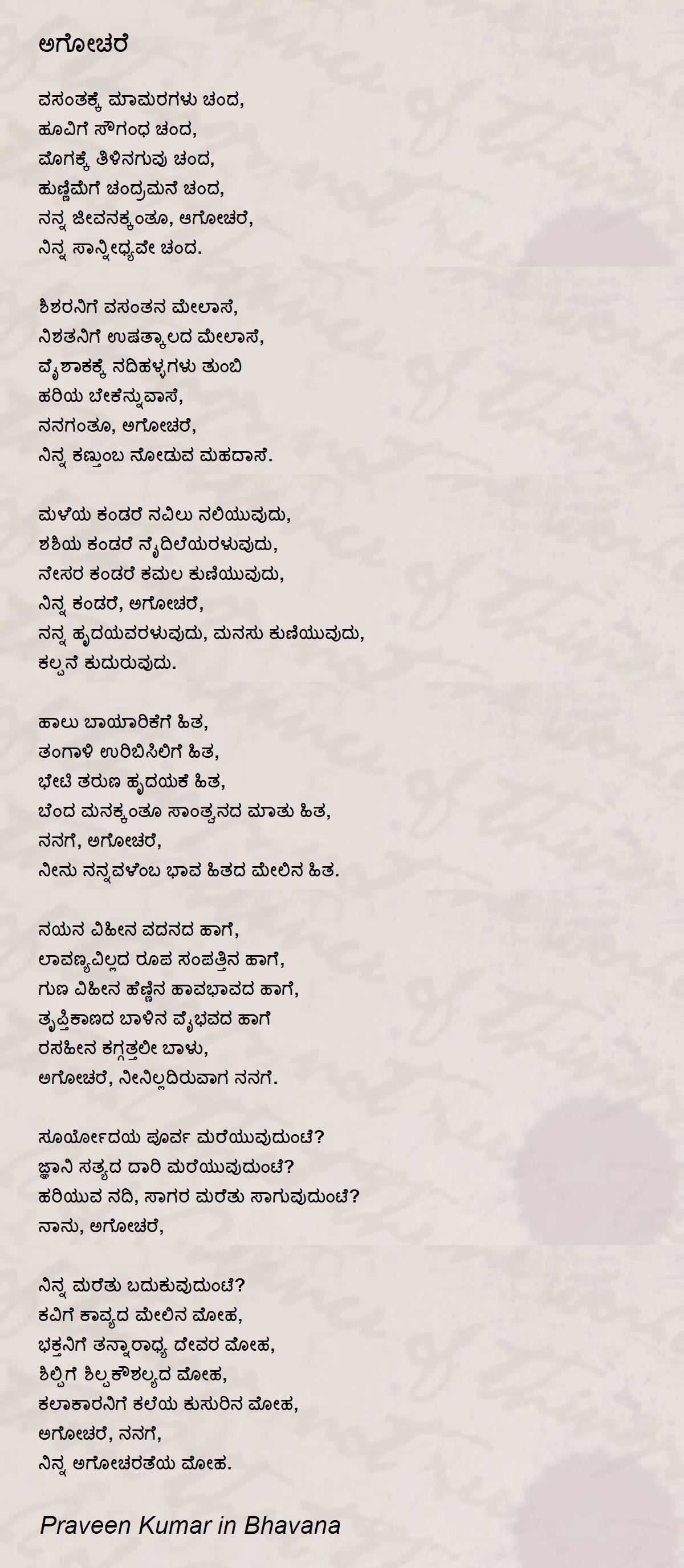 ಓ ನನ್ನ ಅಗೋಚರೆ.