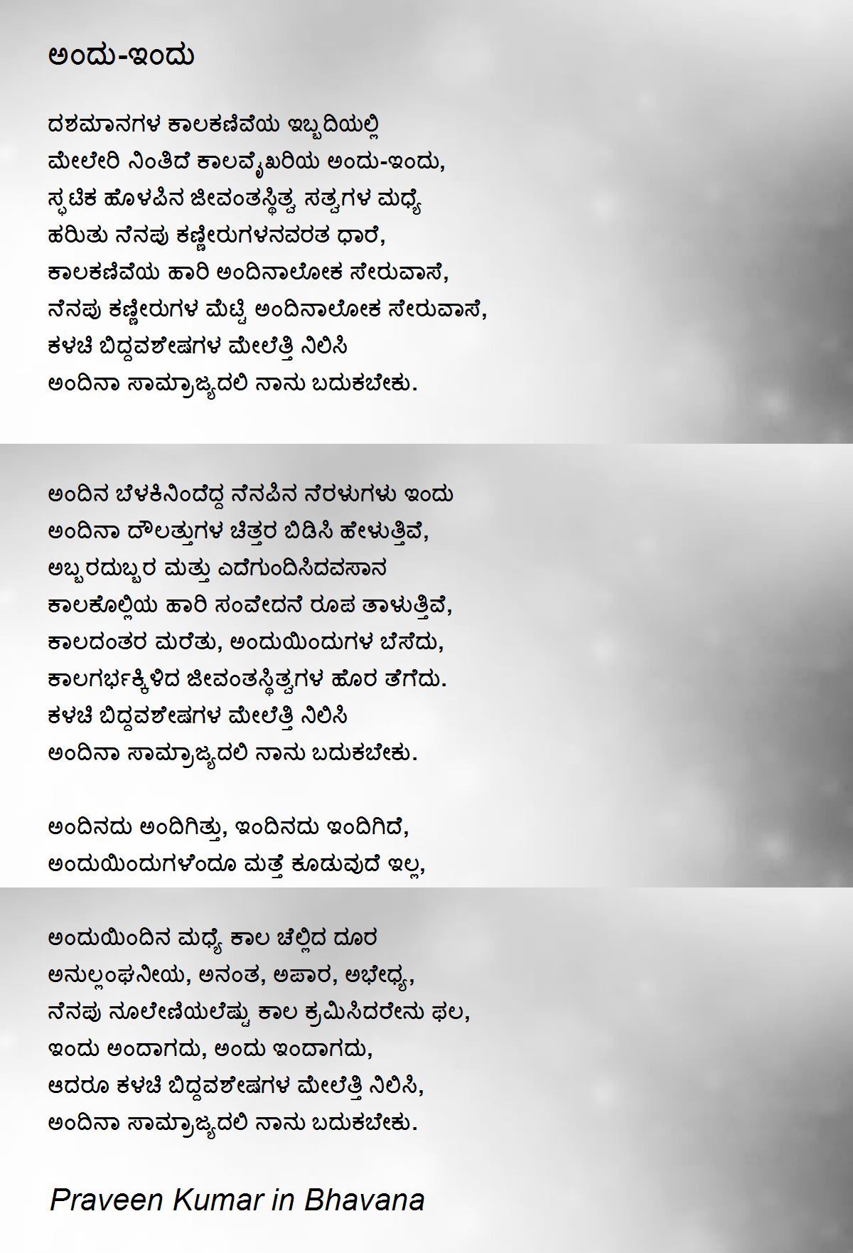 ಕಾಲದಂತರ ಮರೆತು, ಅಂದುಯಿಂದುಗಳ ಬೆಸೆದು,