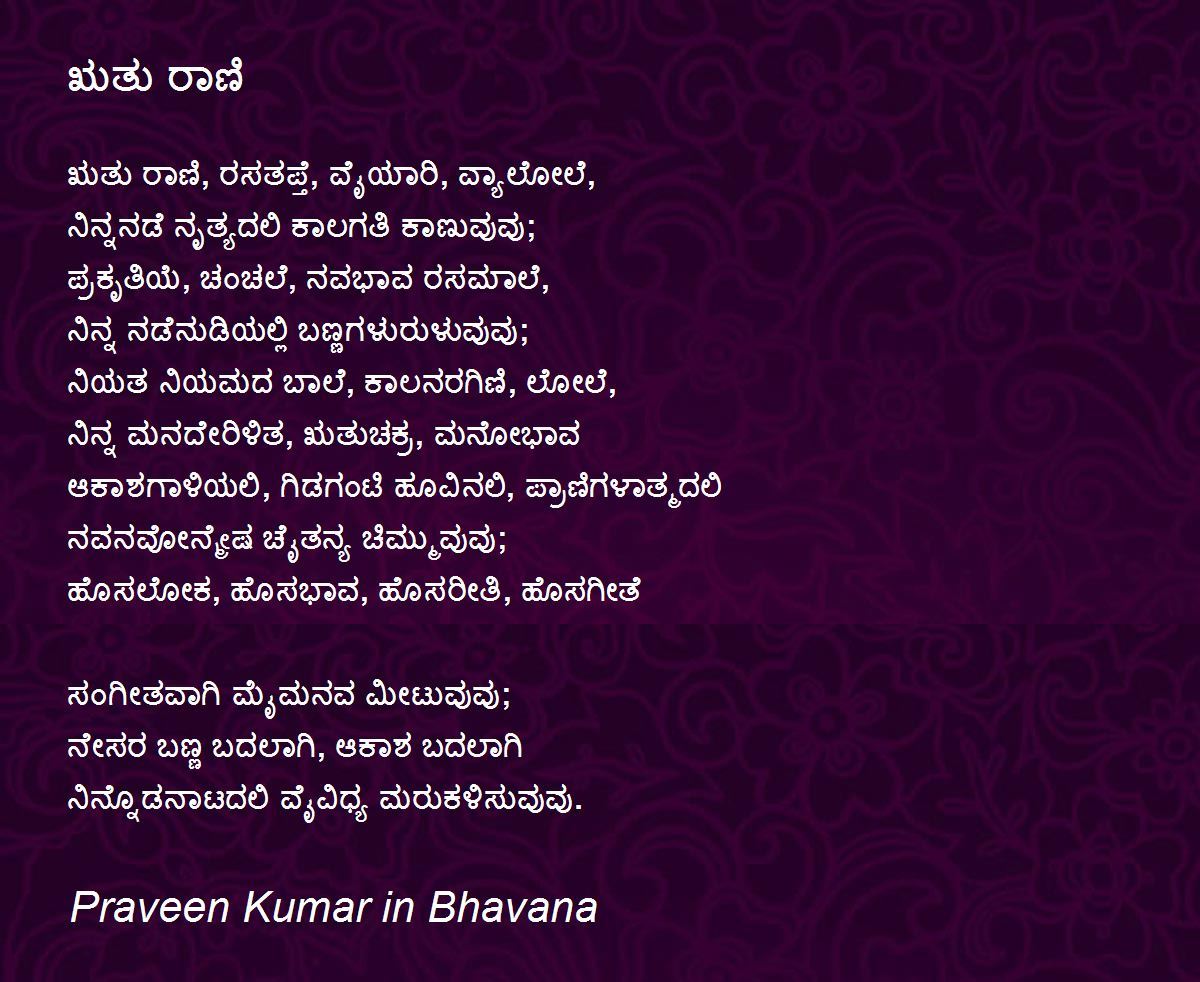 ಪ್ರಕೃತಿಯೆ, ಚಂಚಲೆ, ನವಭಾವ ರಸಮಾಲೆ,