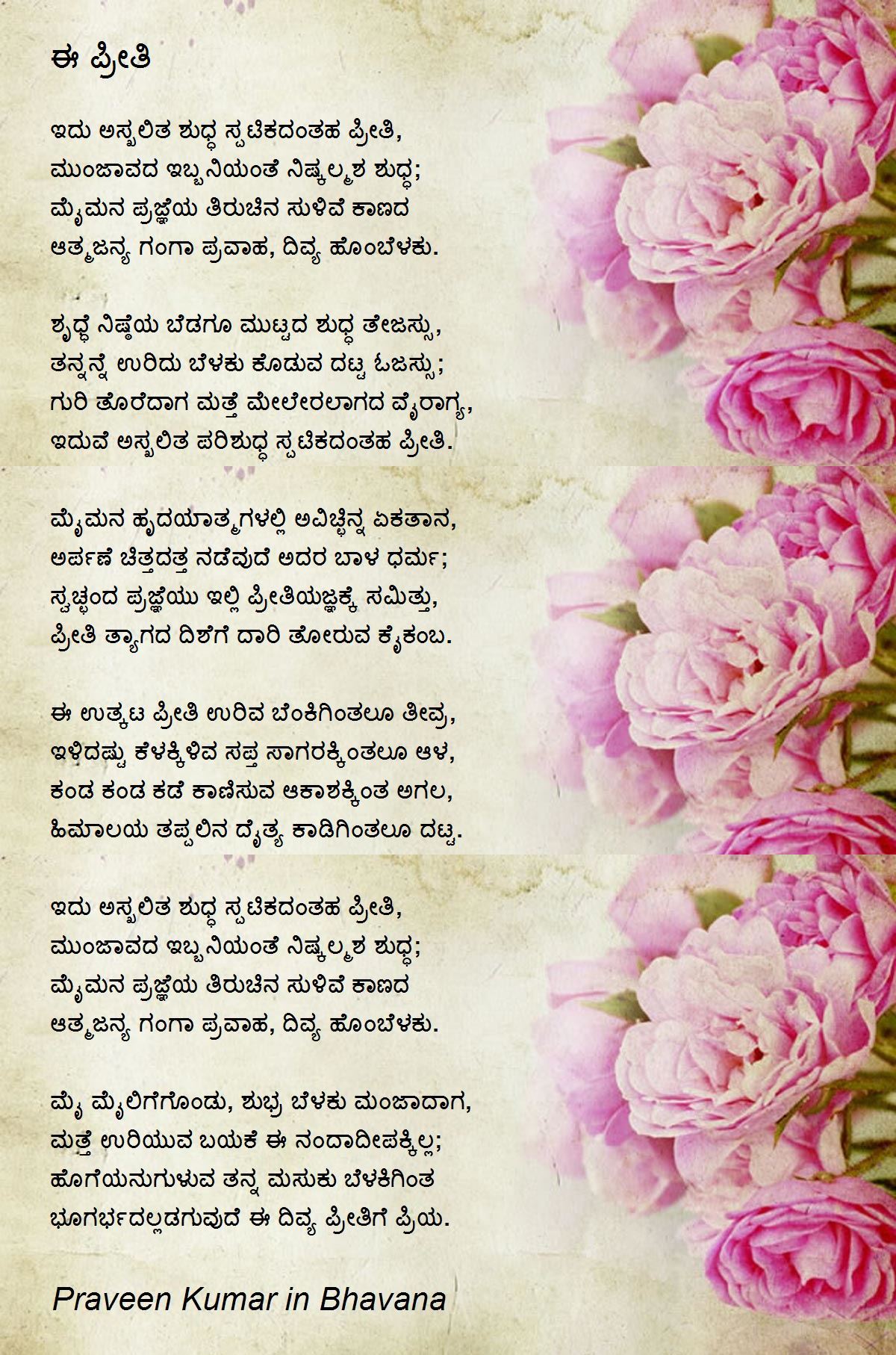 ಇದುವೆ ಅಸ್ಖಲಿತ ಪರಿಶುಧ್ಧ ಸ್ಪಟಿಕದಂತಹ ಪ್ರೀತಿ.