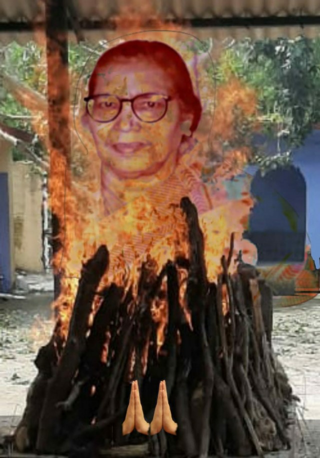 माँ की चिता की गगन चूमती लपटें, राख हो गयीं,