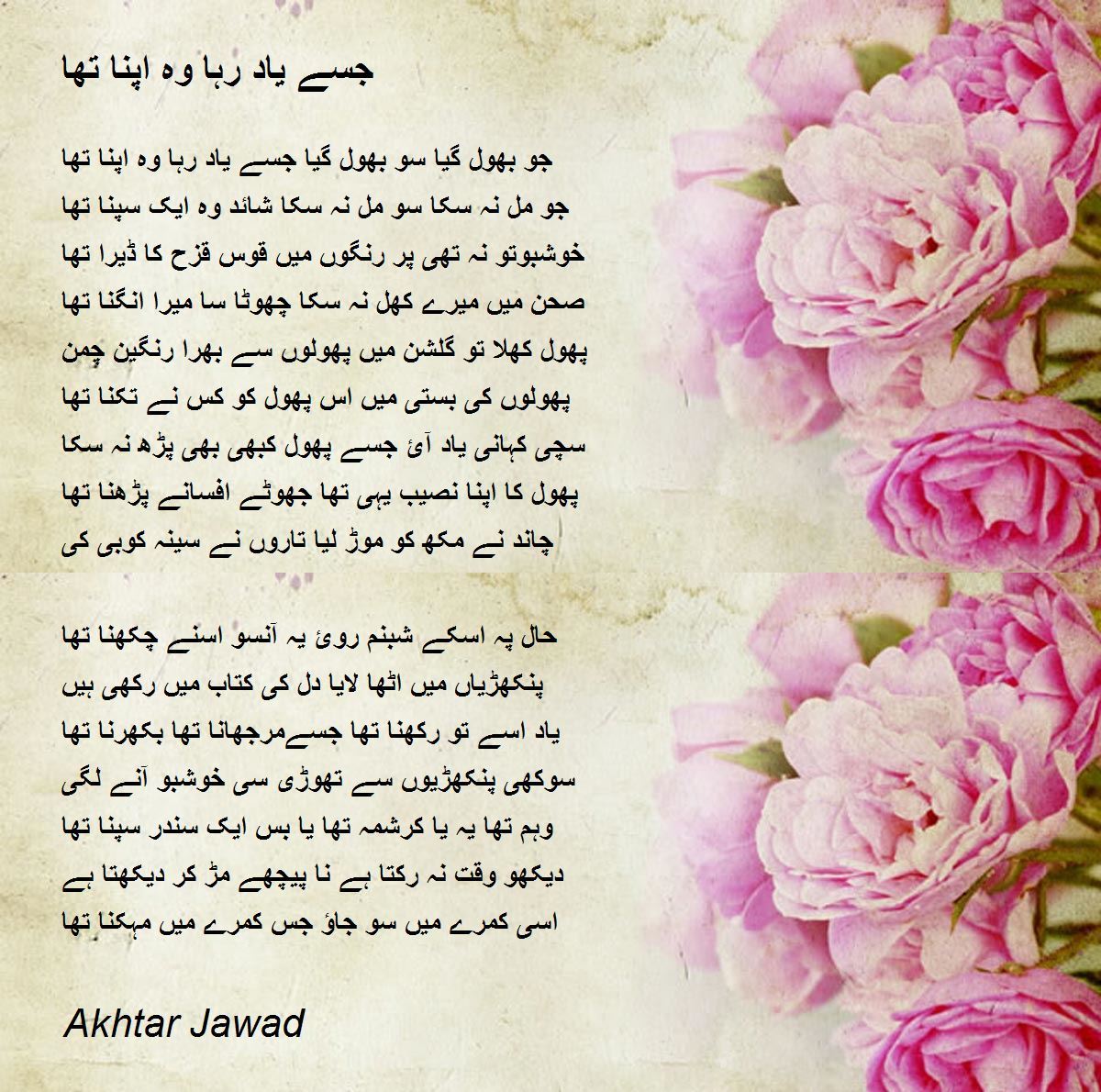 یاد اسے تو رکھنا تھا جسےمرجھانا تھا بکھرنا تھا