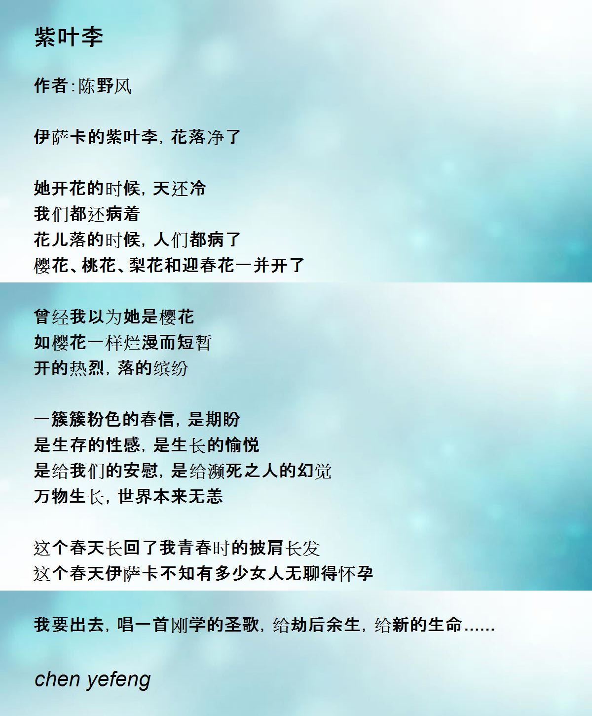 我要出去,唱一首刚学的圣歌,给劫后余生,给新的生命……
