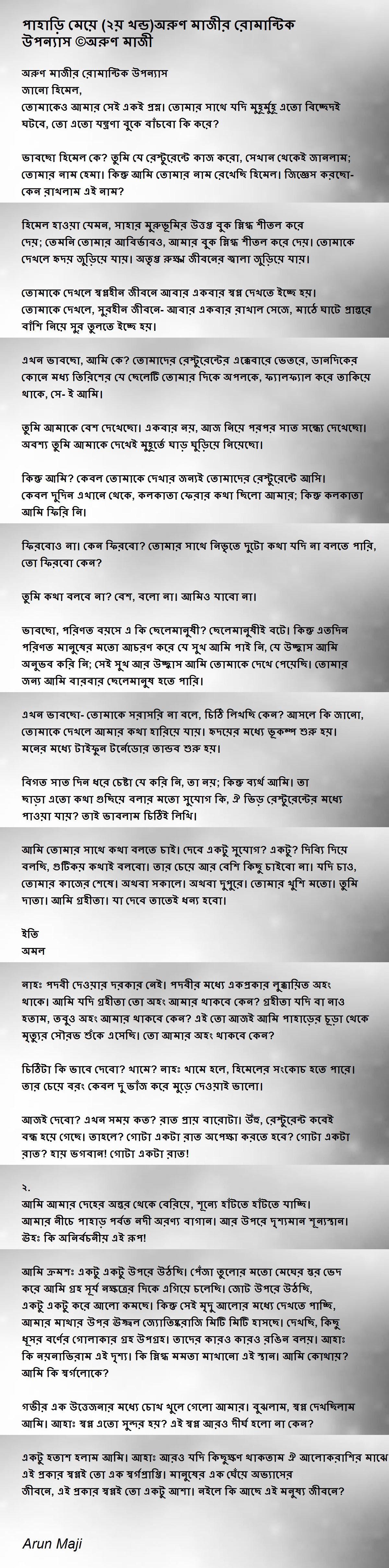 অরুণ মাজীর রোমান্টিক উপন্যাস