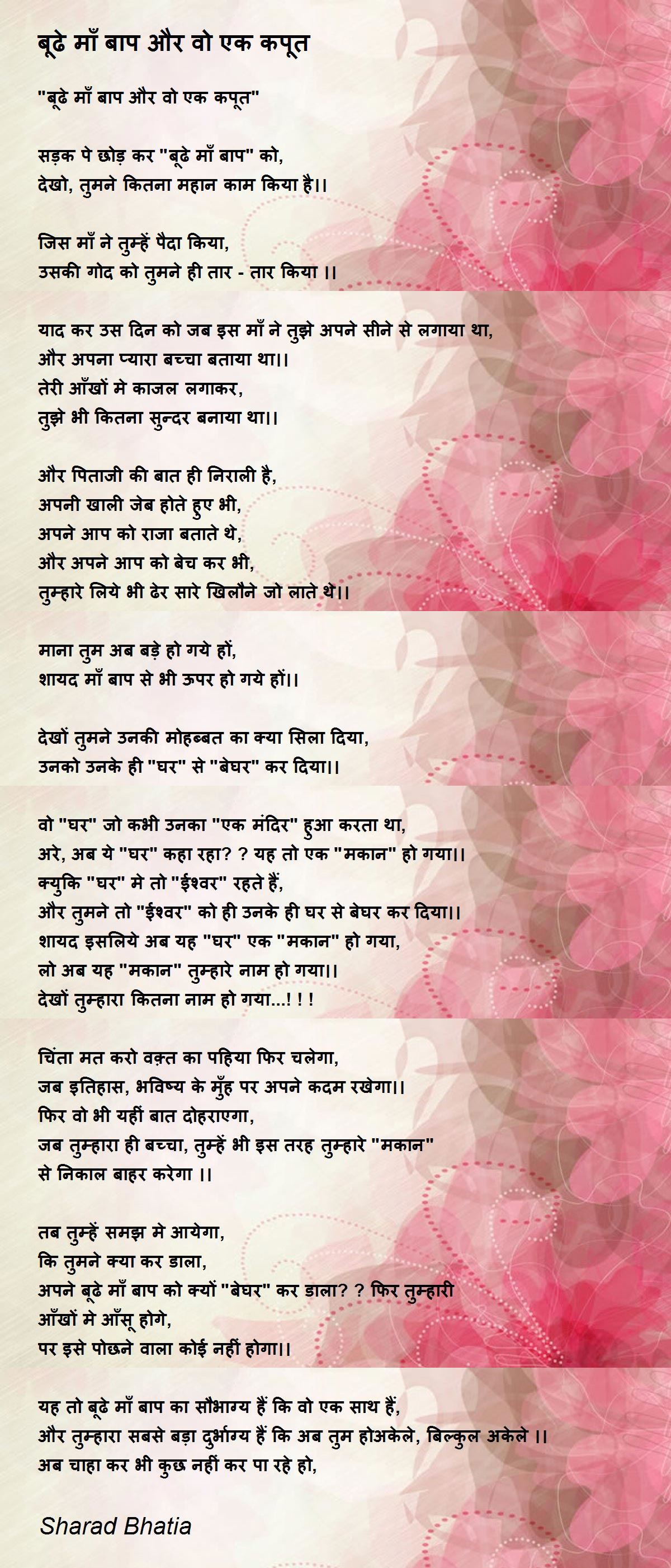 "बूढे माँ बाप और वो एक कपूत"