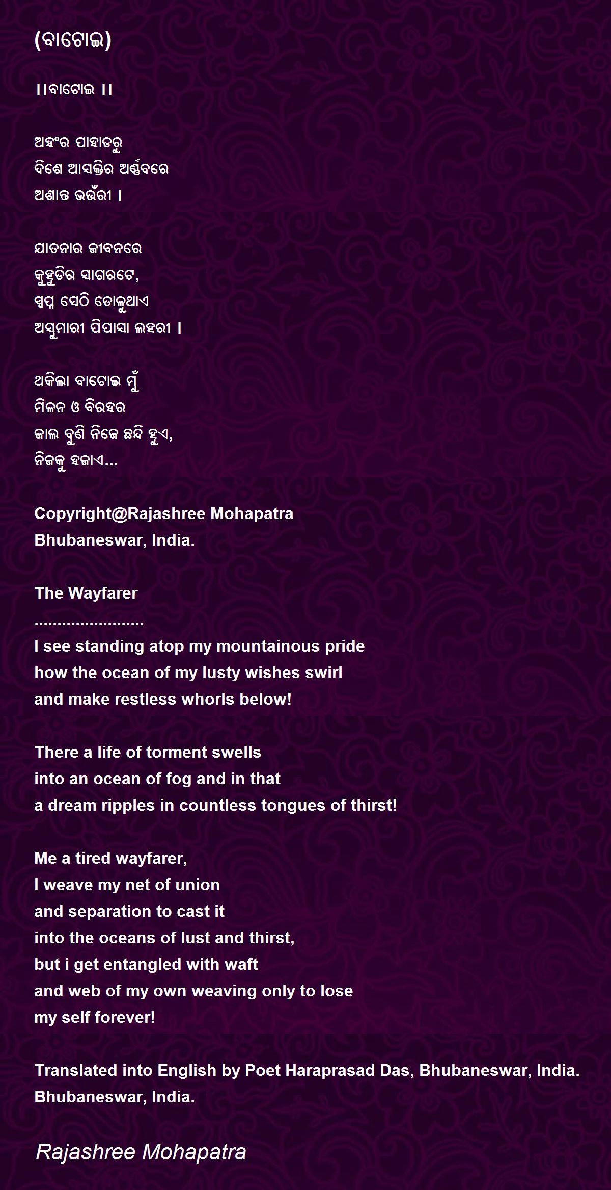Translated into English by Poet Haraprasad Das, Bhubaneswar, India.