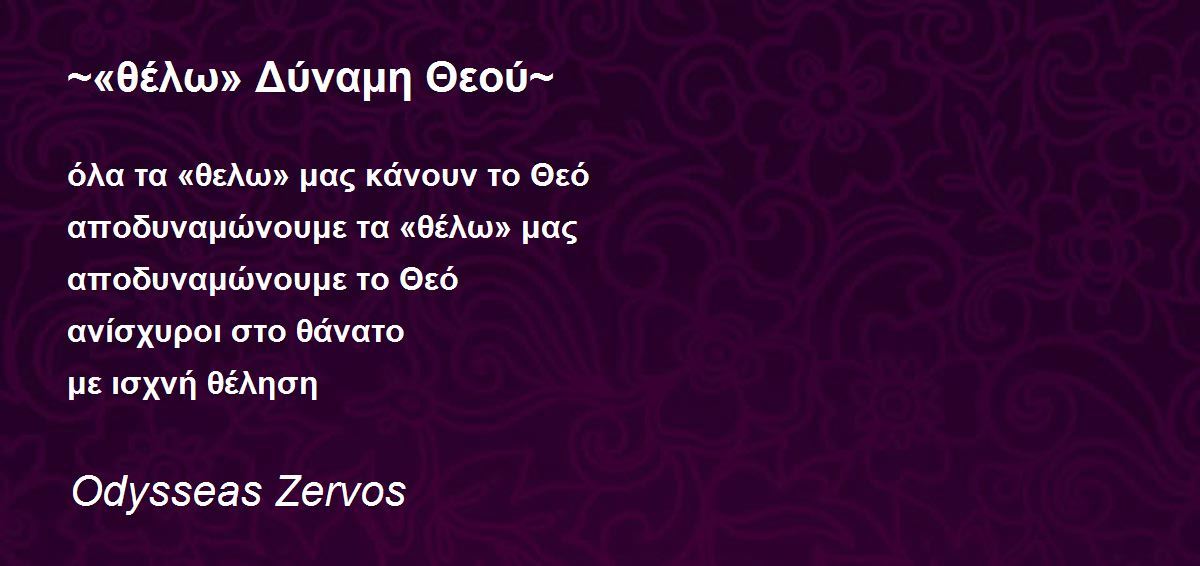 όλα τα «θελω» μας κάνουν το Θεό αποδυναμώνουμε τα «θέλω» μας αποδυναμώνουμε το Θεό ανίσχυροι στο θάνατο με ισχνή θέληση