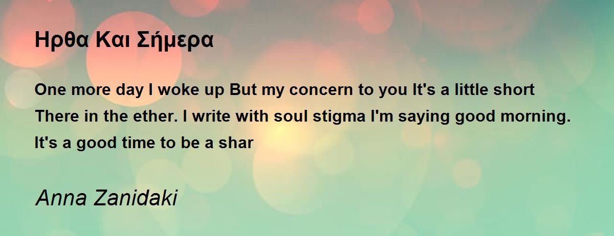 One more day I woke up But my concern to you It's a little short There in the ether.I write with soul stigma I'm saying good morning. It's a good time to be a shar