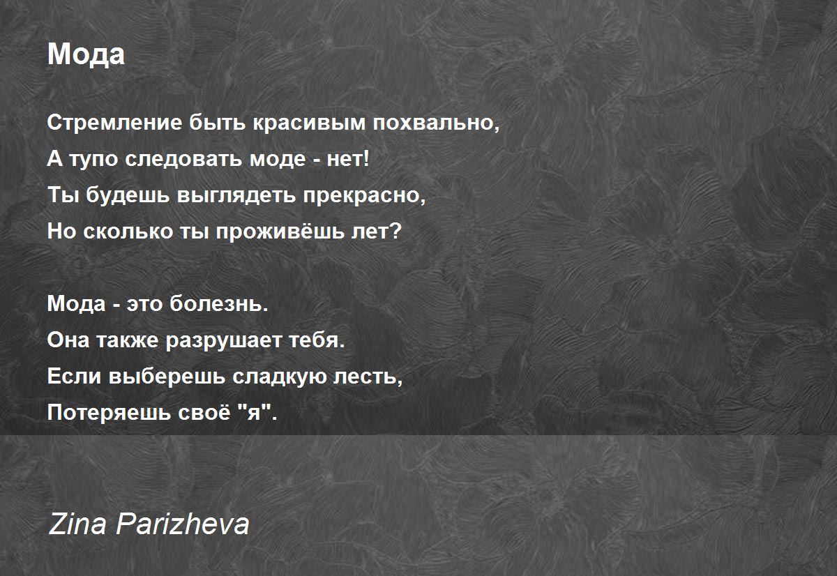 Мода - это болезнь.