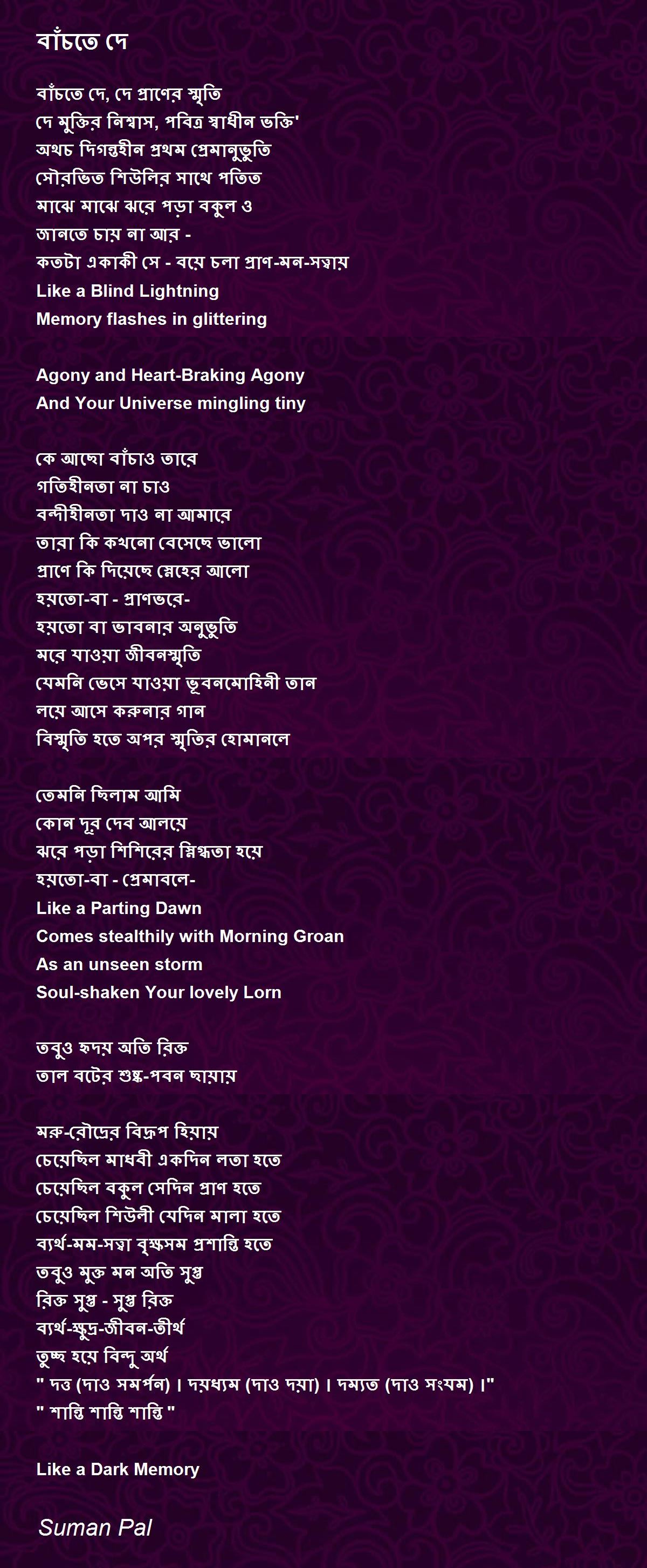 বাঁচতে দে, দে প্রাণের স্মৃতি