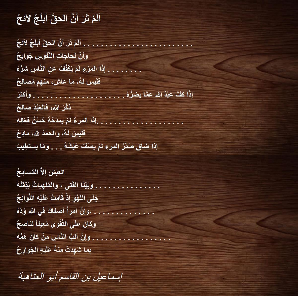 ألَمْ تَرَ أنَّ الحقَّ أبلَجُ لاَئحُ ......................... وأنّ لحاجاتِ النّفوسِ جَوايِحُ