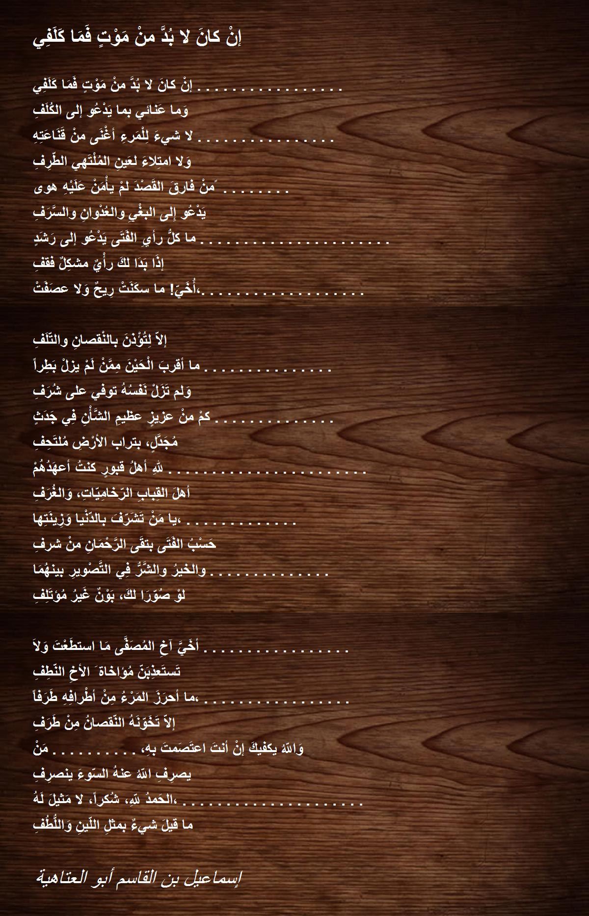 أُخَيّ! ما سكَنَتْ رِيحٌ وَلا عصَفَتْ،................... إلاّ لِتُؤْذنَ بالنْقصانِ والتّلَفِ