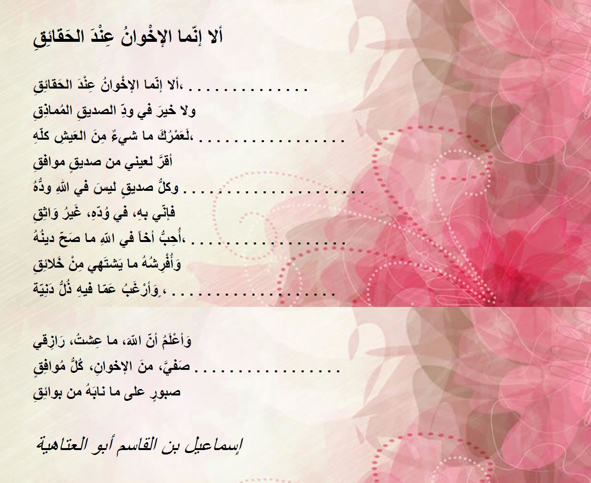 ألا إنّما الإخْوانُ عِنْدَ الحَقائِقِ، .............. ولا خيرَ في ودِّ الصديقِ المُماذِقِ