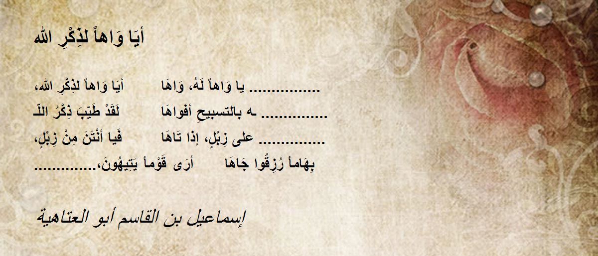 أيَا وَاهاً لذِكْرِ الله، ................ يا وَاهاً لَهُ، وَاهَا