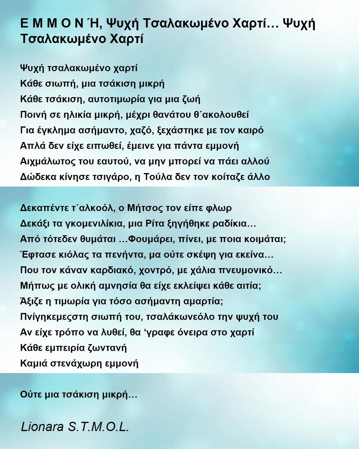 Πνίγηκεμεςστη σιωπή του, τσαλάκωνεόλο την ψυχή του