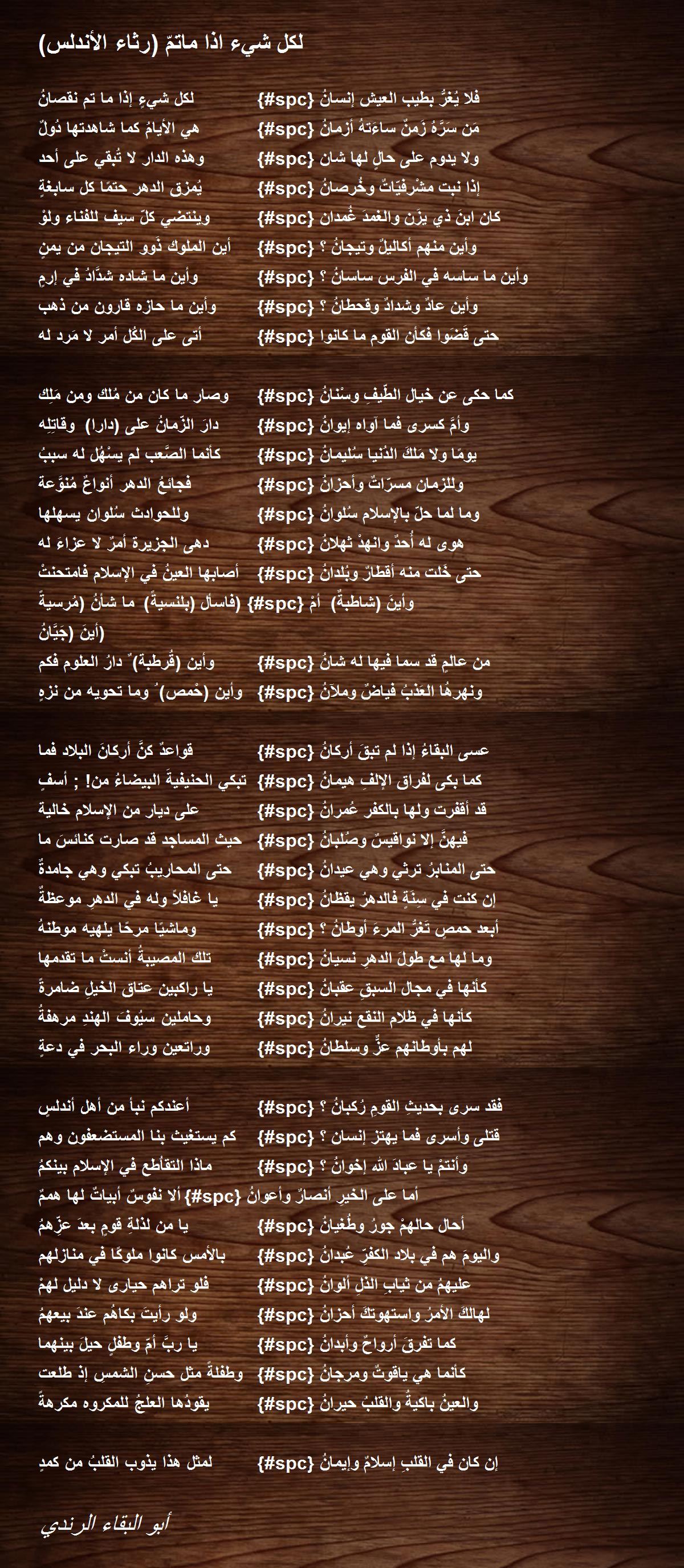 أعندكم نبأ من أهل أندلسٍ {#spc} فقد سرى بحديثِ القومِ رُكبانُ ؟