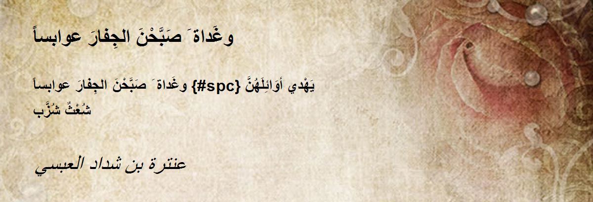 وغَداة َ صَبَّحْنَ الجِفارَ عوابساً {#spc} يَهْدي أوَائِلَهُنَّ شُعْثٌ شُزَّب