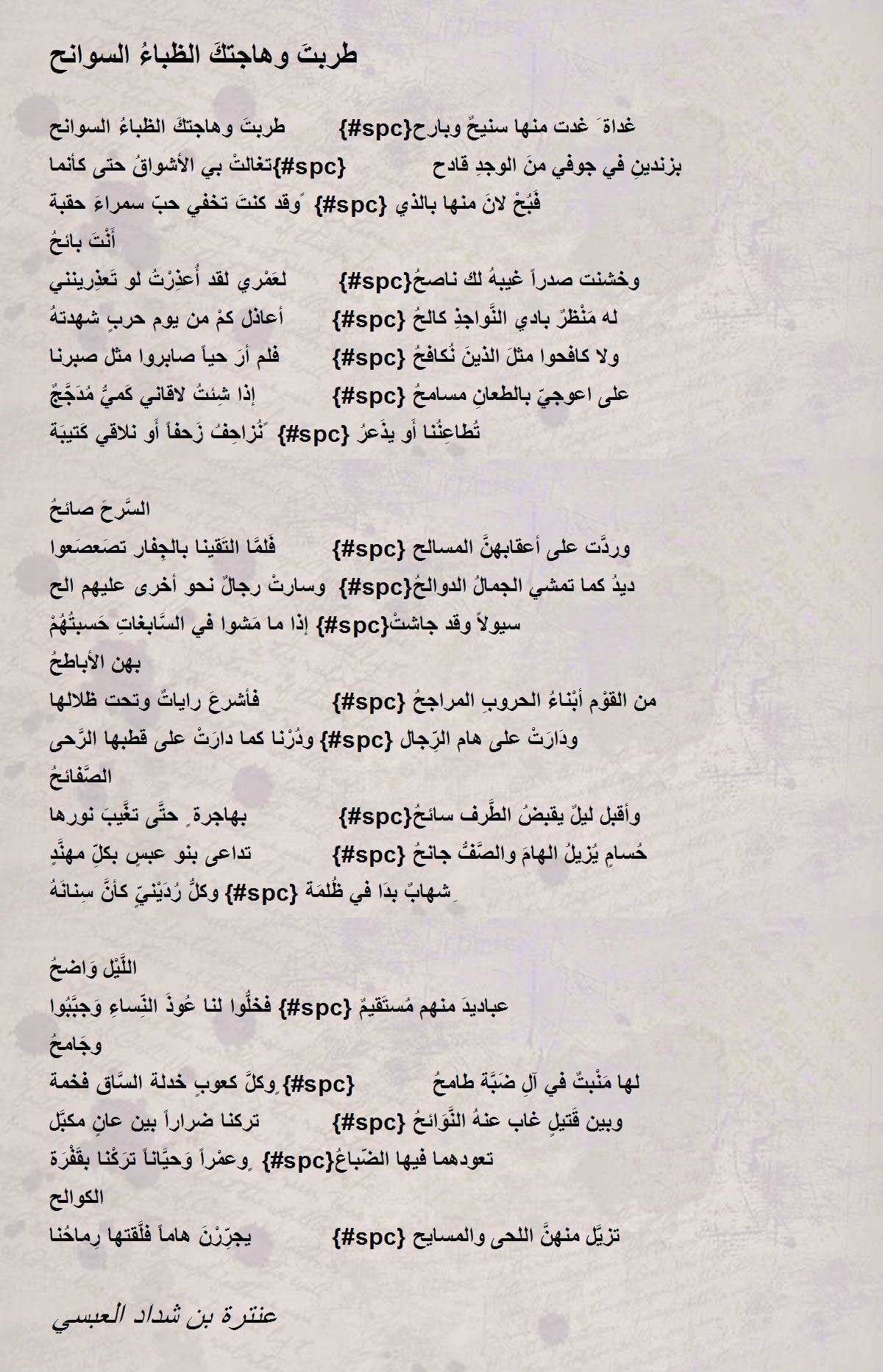 تداعى بنو عبسٍ بكلِّ مهنَّدٍ {#spc} حُسامٍ يُزيلُ الهامَ والصَّفُّ جانحُ