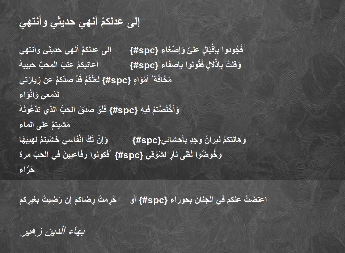 إلى عدلكمْ أنهي حديثي وأنتهي {#spc} فَجُودوا بإقْبَالٍ عليّ وَإصْغاءِ
