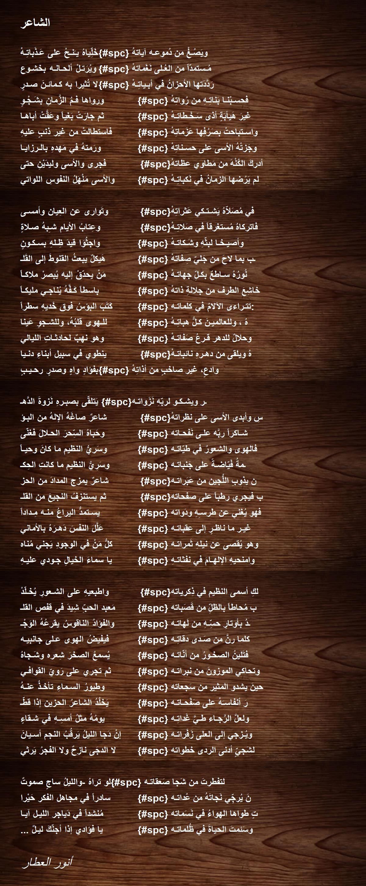 يَخلُدُ الشاعرُ الحزين إذا قطّـ {#spc} رَ أنفاسـَهُ على صَفَحـاتـه