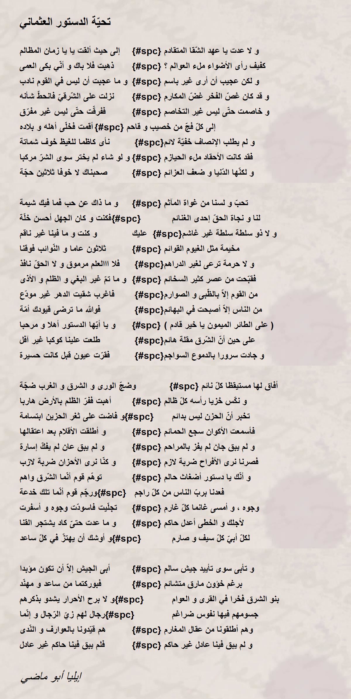 و يا أيّها الدستور أهلا و مرحبا {#spc} ( على الطائر الميمون يا خير قادم )