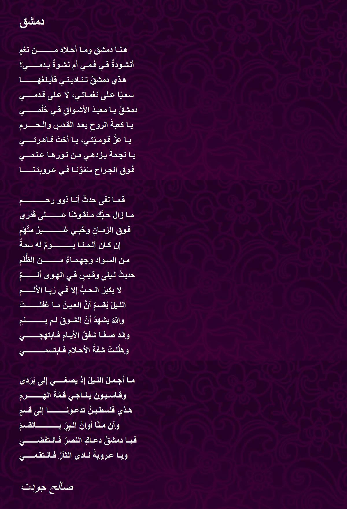 دمشقُ يـا معبـدَ الأشـواقِ فـي حُلُمـــــــي