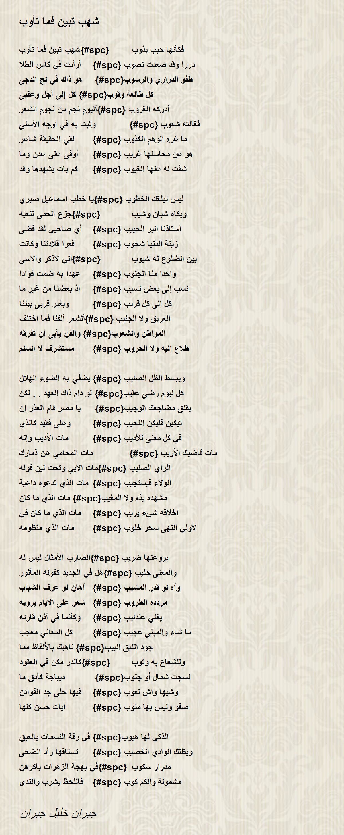 ناهيك بالألفاظ مما {#spc}جود اللبق البيب