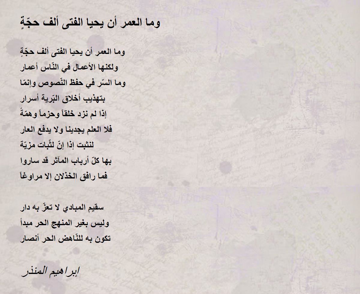 وما العمر أن يحيا الفتى ألف حجّةٍ