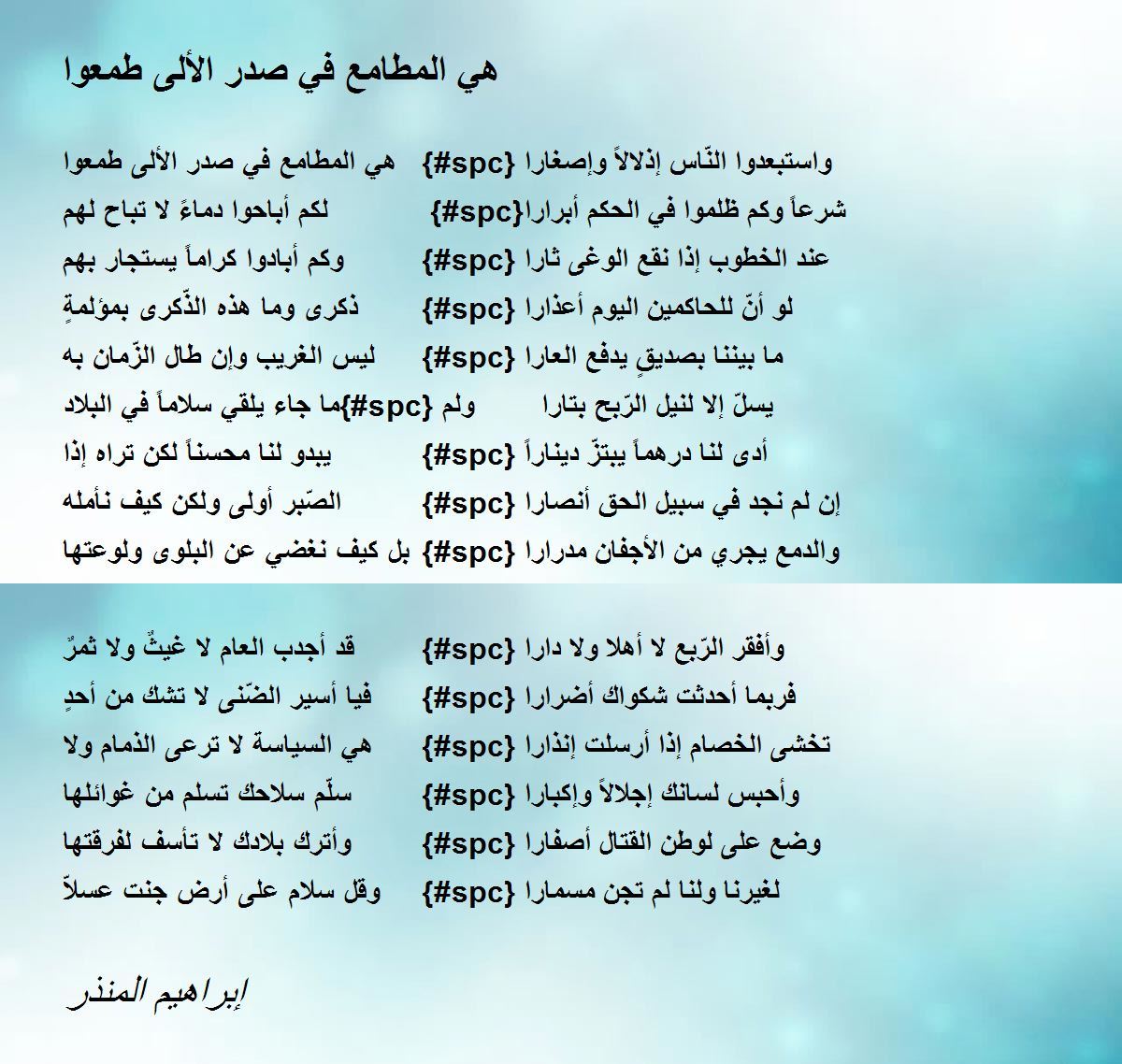 هي المطامع في صدر الألى طمعوا {#spc} واستبعدوا النّاس إذلالاً وإصغارا