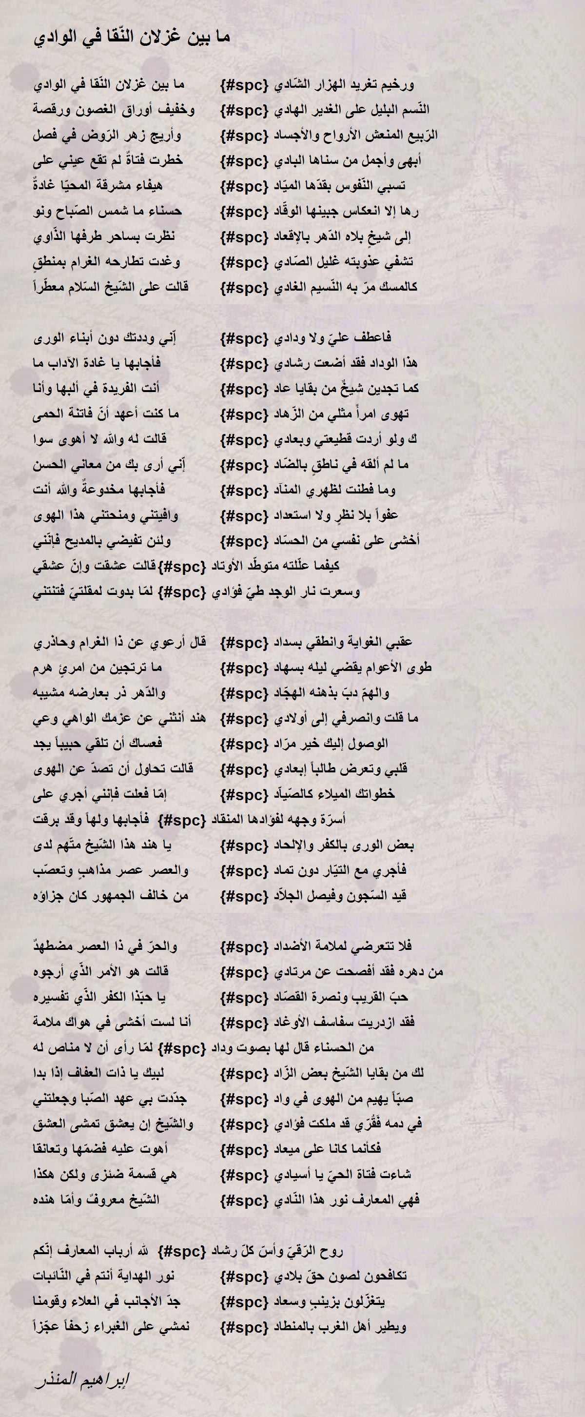 ما بين غزلان النّقا في الوادي {#spc} ورخيم تغريد الهزار الشّادي