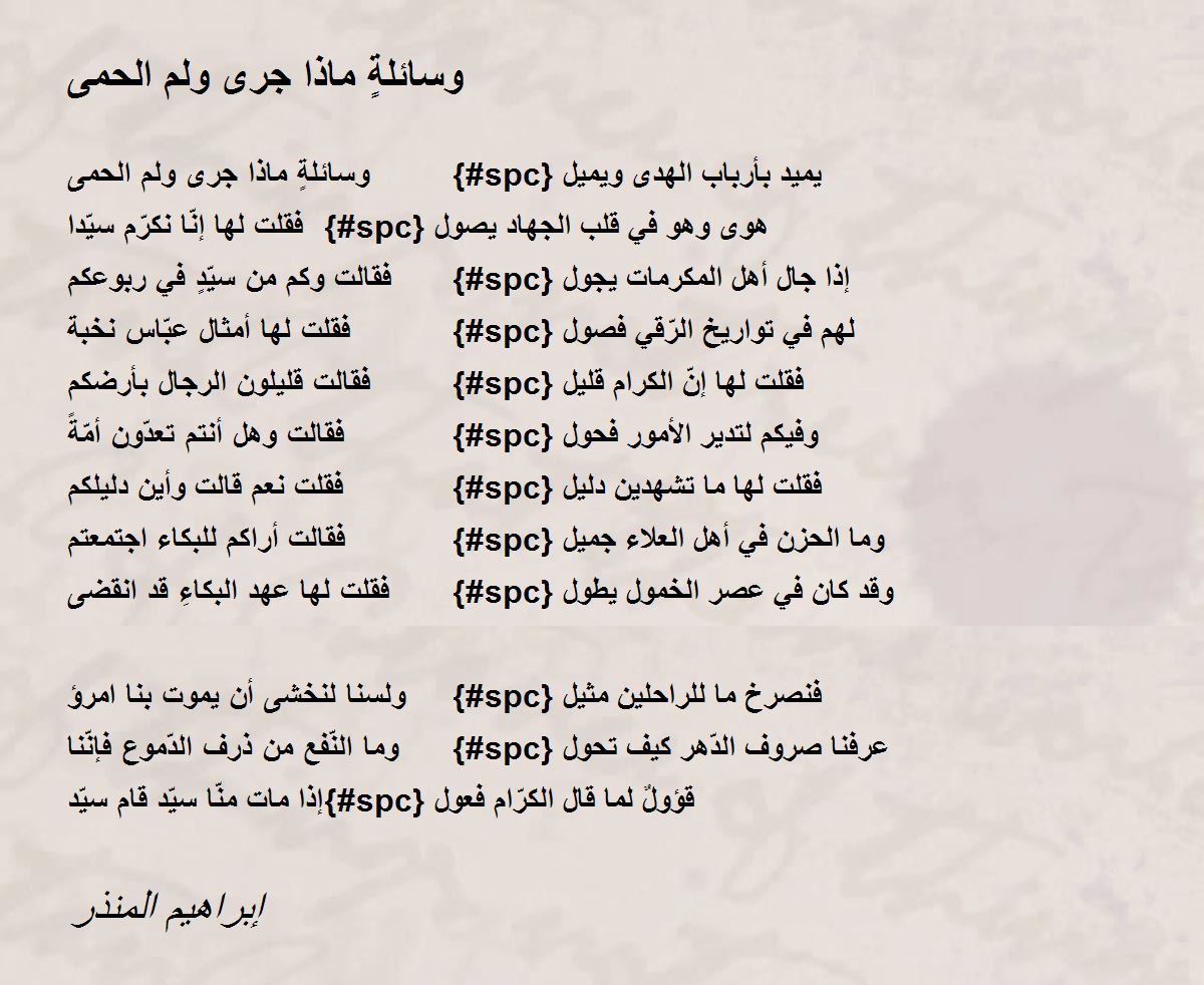 وسائلةٍ ماذا جرى ولم الحمى {#spc} يميد بأرباب الهدى ويميل
