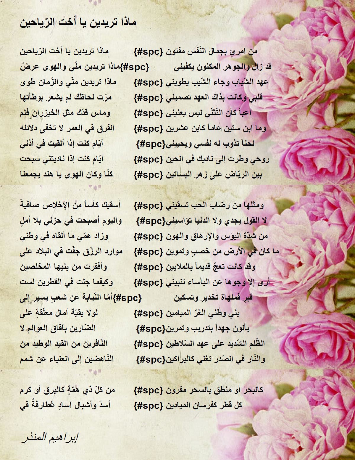 ماذا تريدين يا أخت الرّياحين {#spc} من امرئٍ بجمال النّفس مفتون