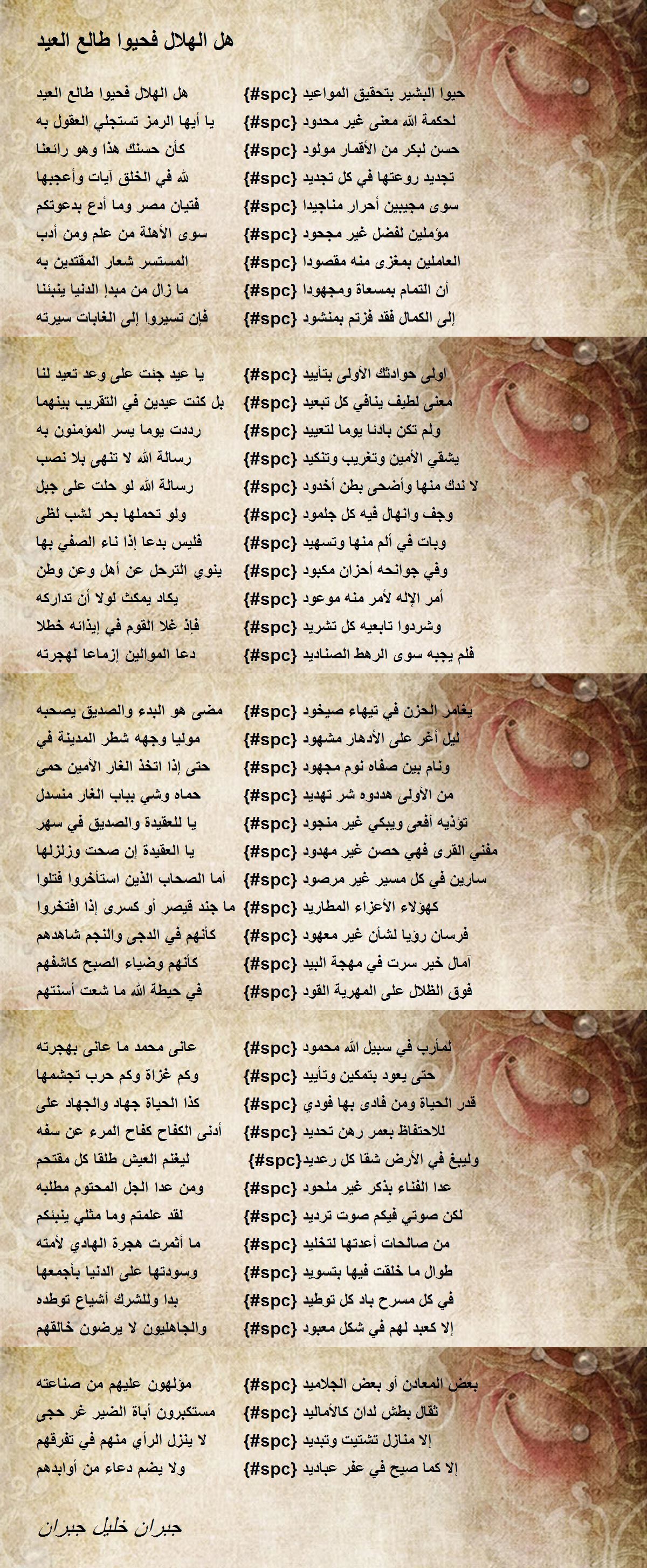 بدا الفلاح وفي هذا الهلال لكم {#spc} بشرى التمام لوقت غير ممدود