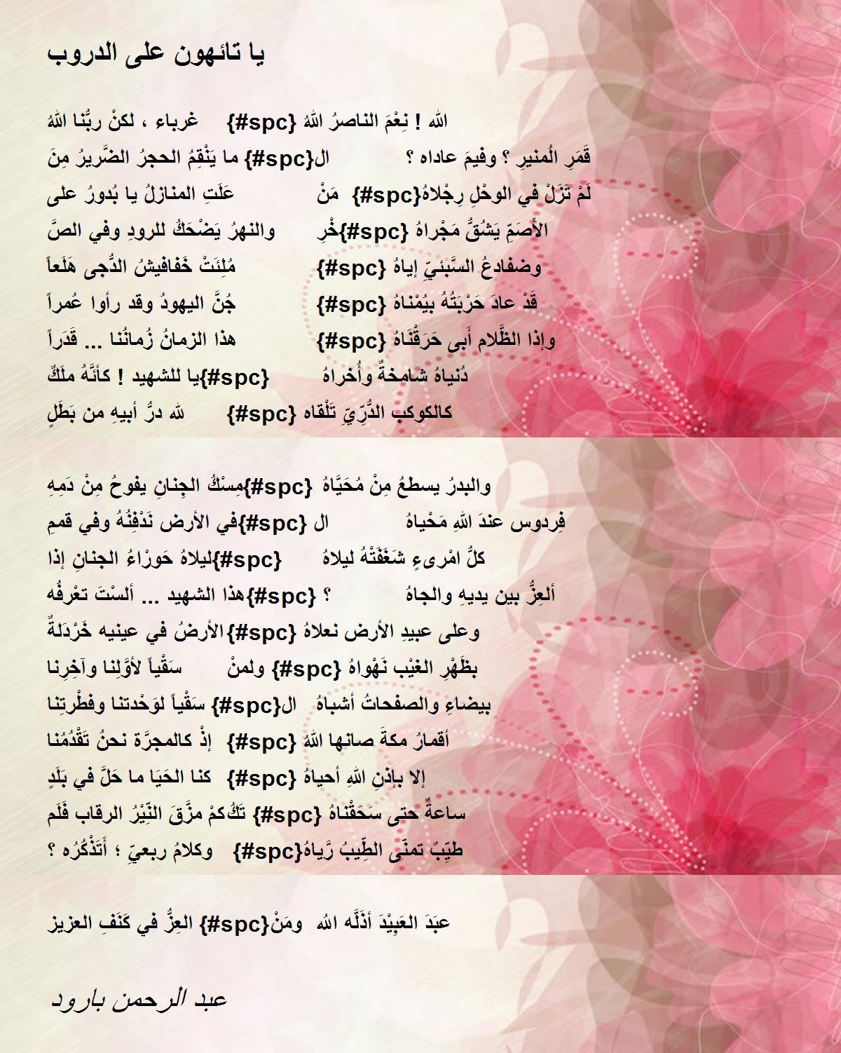 سَقْياً لوَحْدتنا وفطْرتِنا {#spc}ال بيضاءِ والصفحاتُ أشباهُ