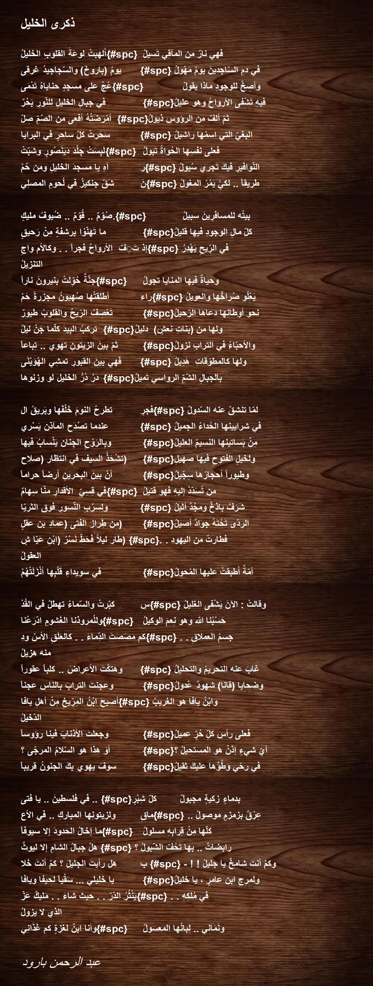 آهِ يا مسجدَ الخليلِ ومن حُمْ ر{#spc} النّوافيرِ فيكَ تَجري سُيولُ