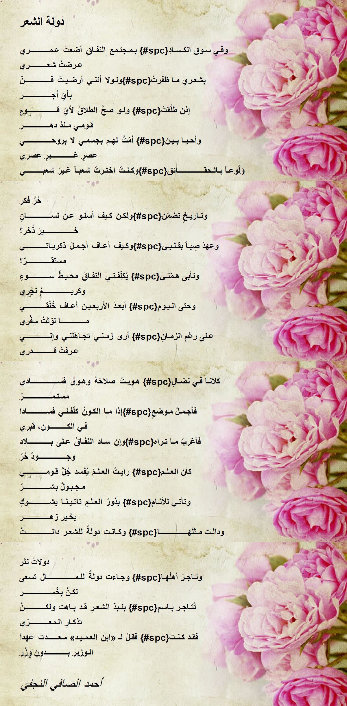 بـمـجتـمع النفـاقِ أضعتُ عـمـــــــــــري {#spc}وفـي سـوق الكـسـادِ عـرضتُ شعــــــــــري