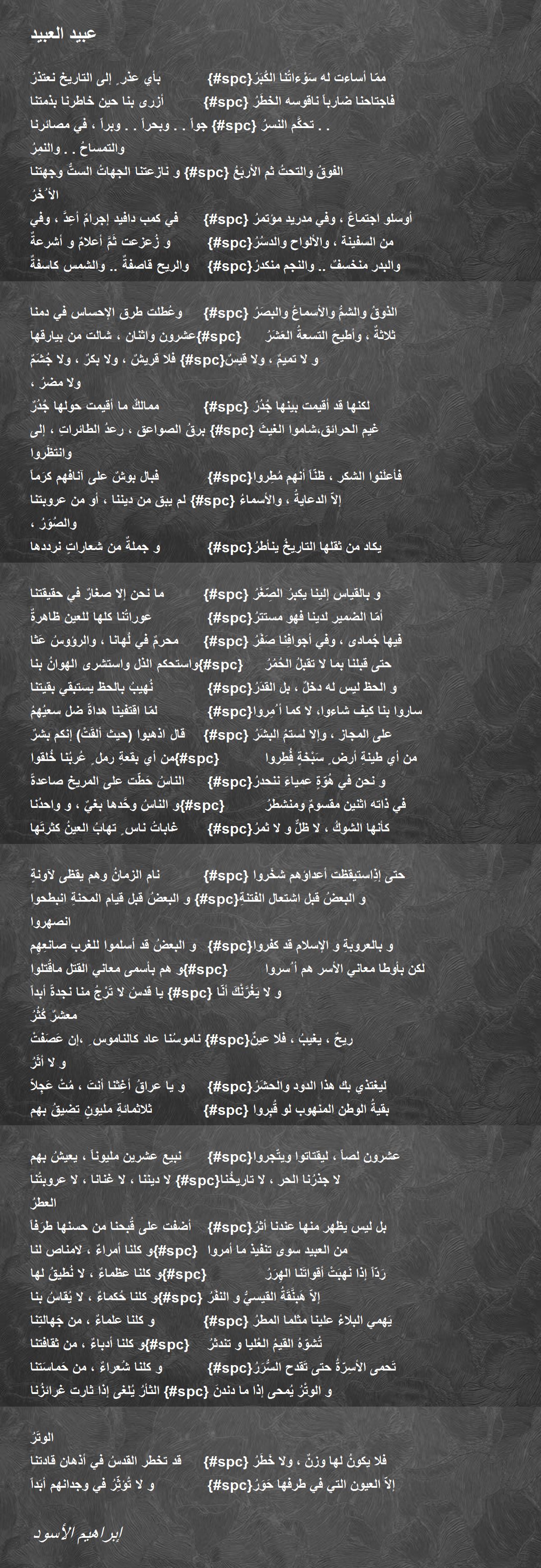بأي عذر ٍ إلى التاريخ نعتذرُ {#spc}ممّا أساءت له سَوْءاتُنا الكُبَرُ