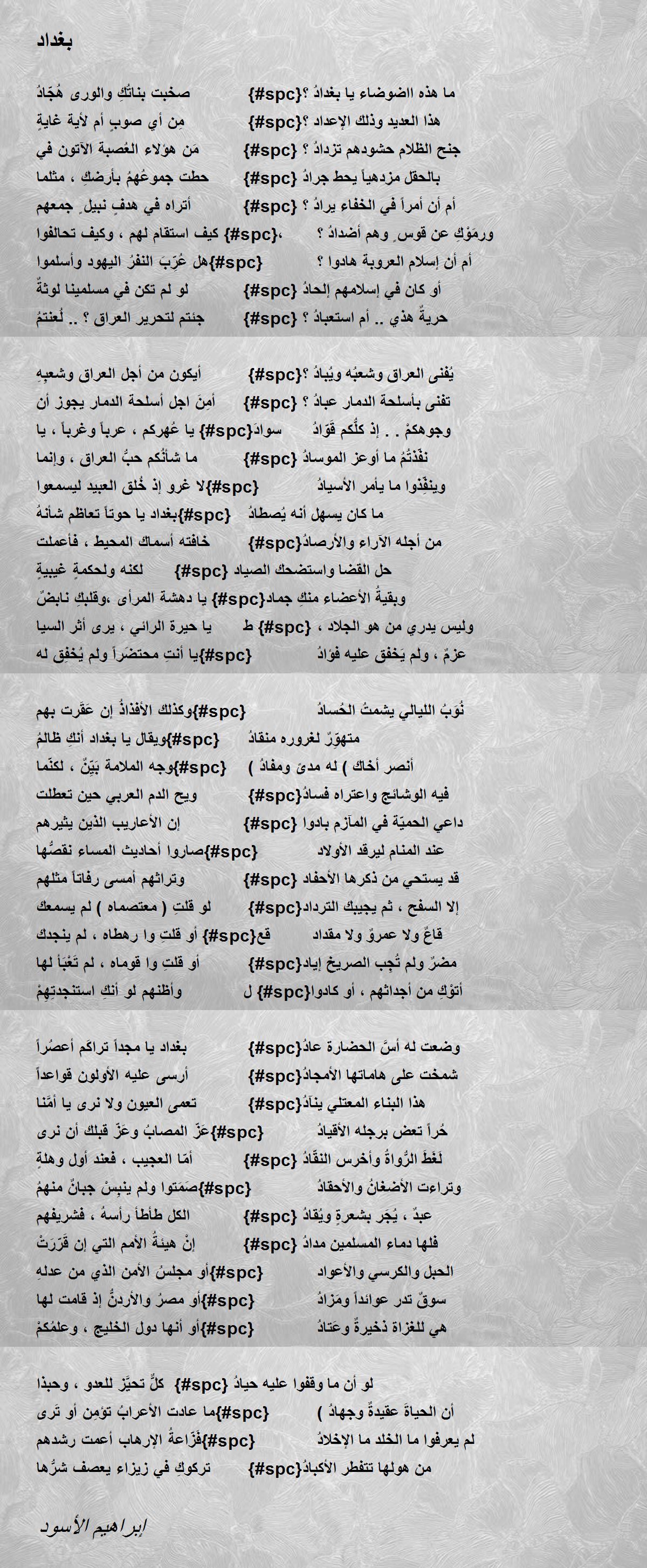 لا بأس يا بغداد ، إن بقيةً{#spc} للسيف ، قد تنمو بها الأعداد