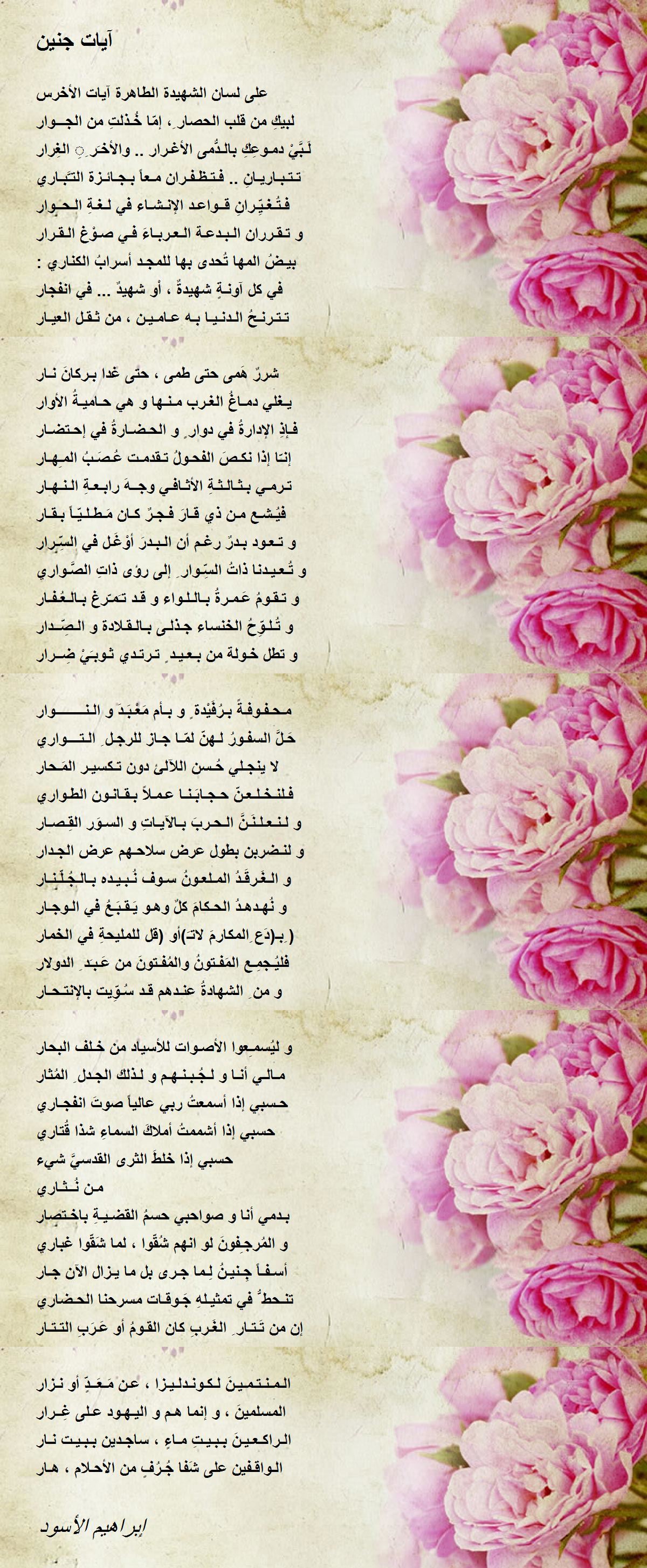 أسـفـاً جِـنيـنُ لِـما جـرى بل ما يـزال الآن جـار
