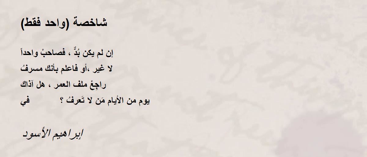 إن لم يكن بُدٌّ ، فصاحبْ واحداً لا غير ،أو فاعلم بأنك مسرفُ راجِعْ ملف العمر ، هل آذاك في يوم من الأيام مَن لا تَعرفُ ؟